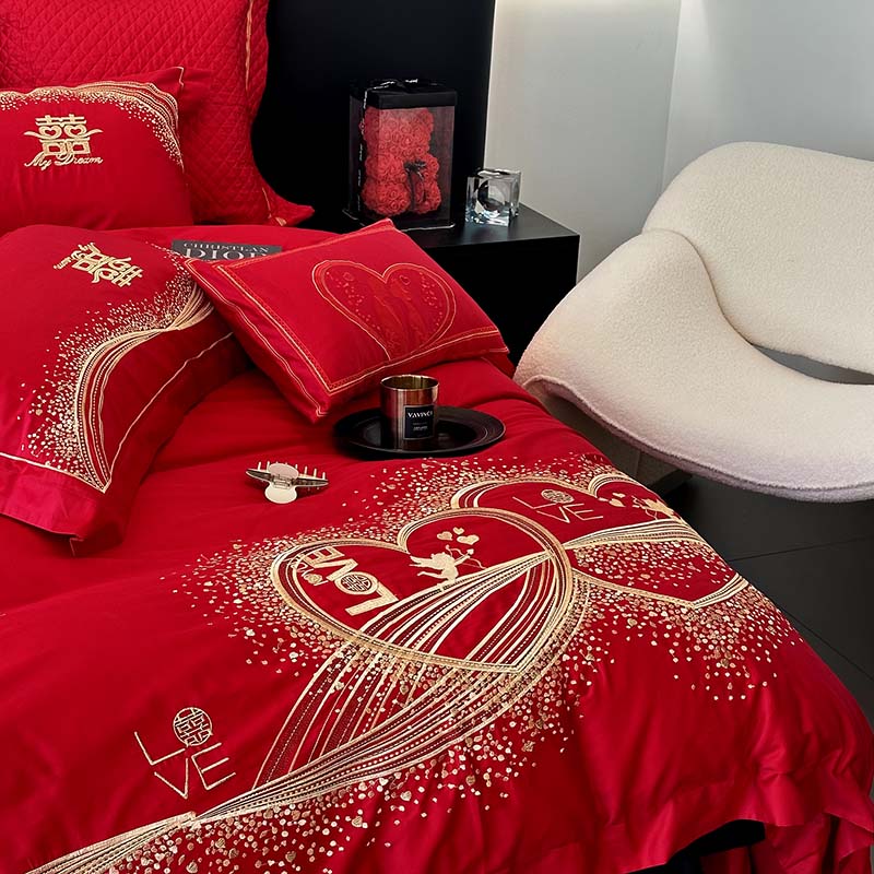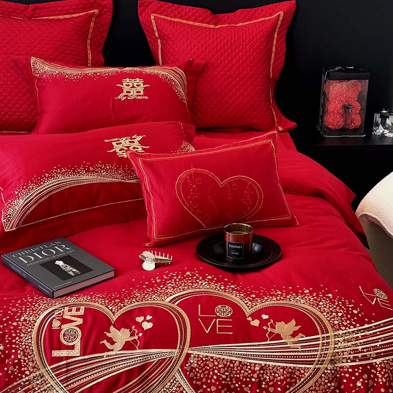 当前位置: 91家纺网 > 商品网购 > 床品套件 > 四件套 > 婚庆四件套 > JUICY 橘滋家纺 2023新款轻奢高端进口长绒棉刺绣婚庆四件套 天使之吻