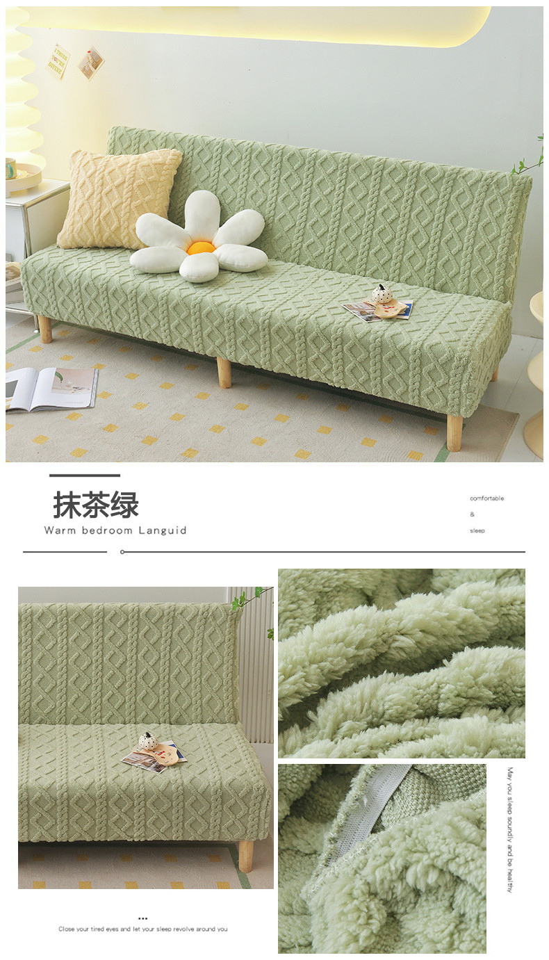 启博家纺 2023新款简约提花绒无扶手沙发套 抹茶绿