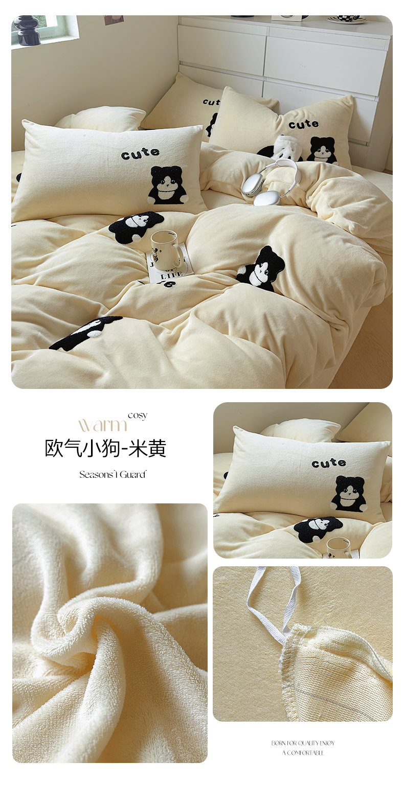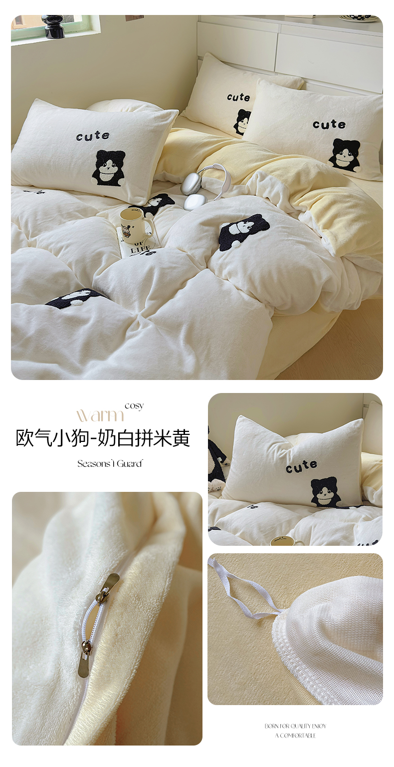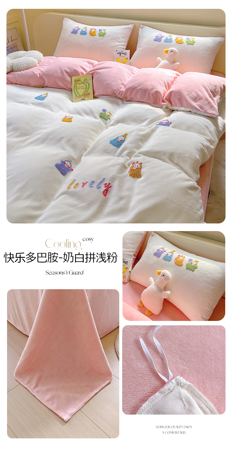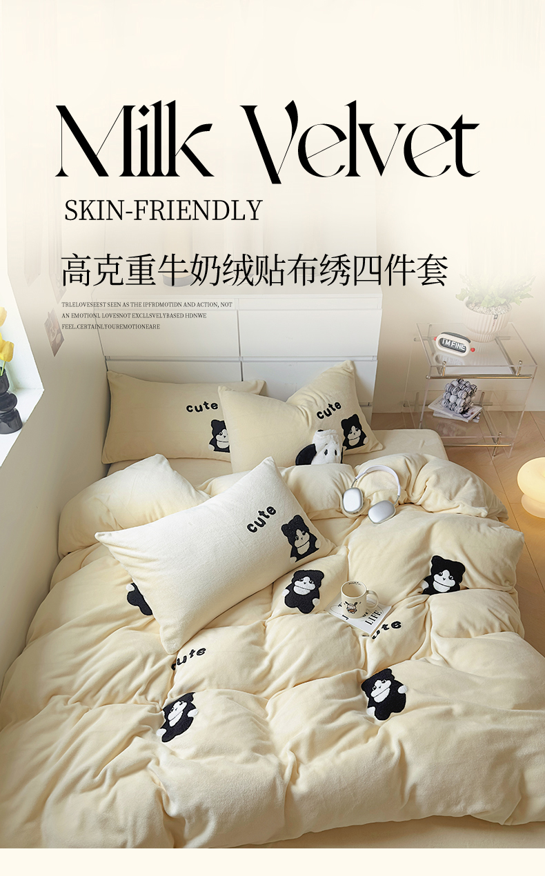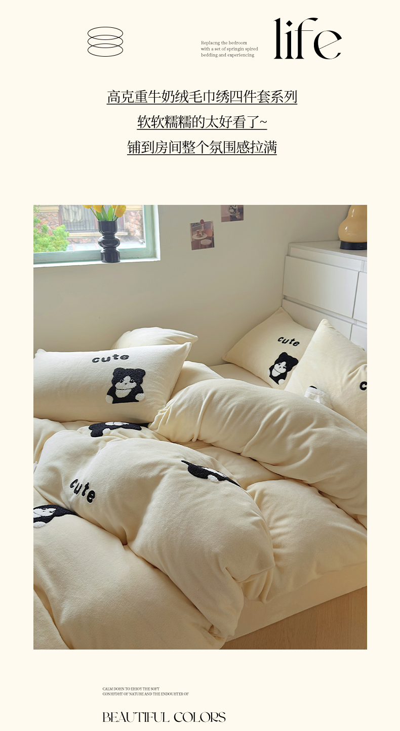 商品名称:(总)山茶家纺 2023新款高克重牛奶绒贴布绣毛巾绣四件套