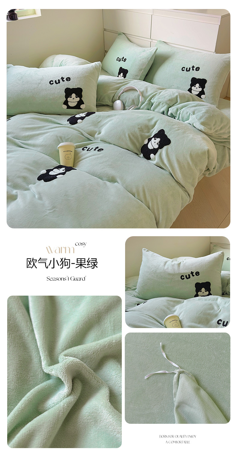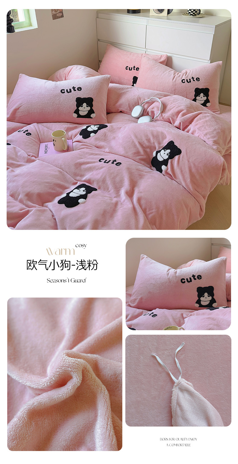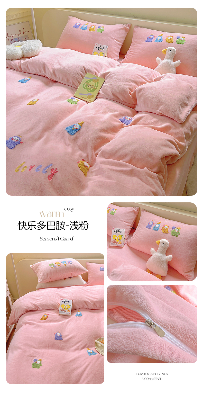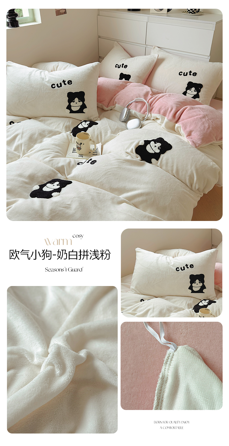 商品名称:(总)山茶家纺 2023新款高克重牛奶绒贴布绣毛巾绣四件套