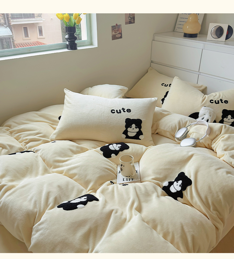 (总)山茶家纺 2023新款高克重牛奶绒贴布绣毛巾绣四件套