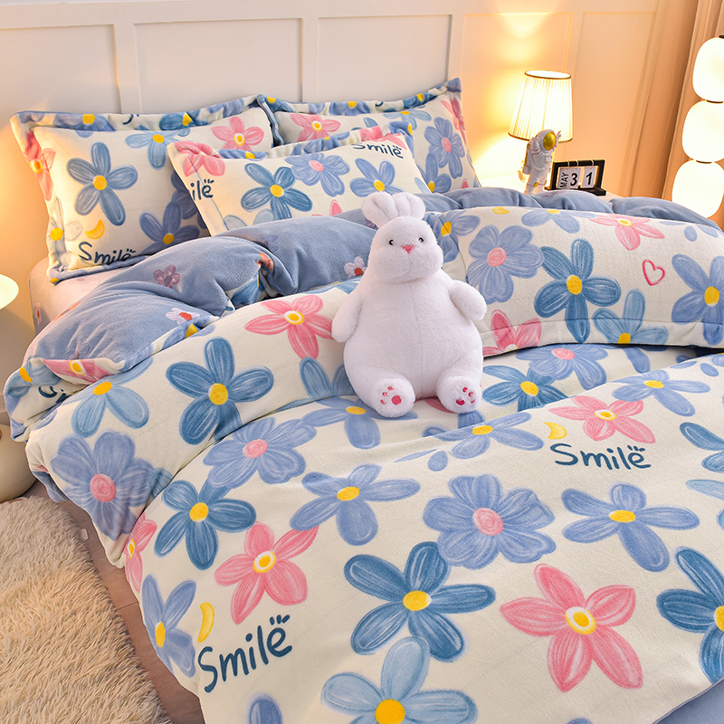 (总)简一 2025新款牛奶绒花边床盖四件套,磁带熊仔,浪漫花语,萌宠之家,梦幻蝴蝶结,派队乐园,水墨蝴蝶