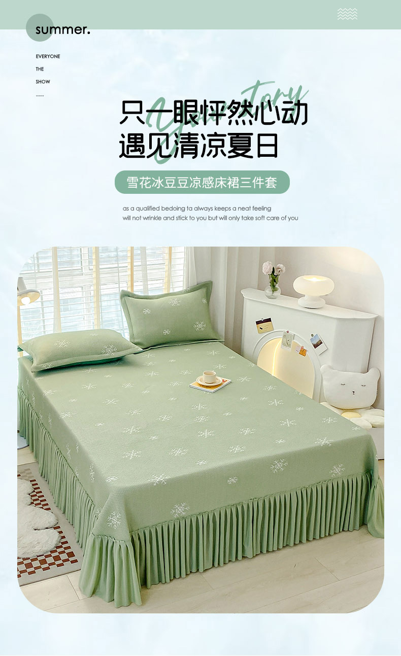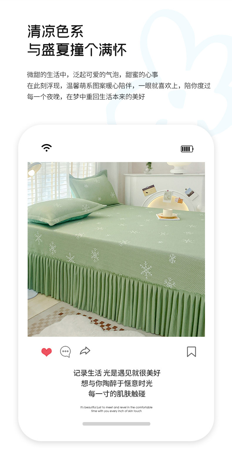 (总)伊而梦 2024新款A类凉感冰豆豆床裙席-清欢,清欢-灰,清欢-粉,清欢-绿,清欢-蓝