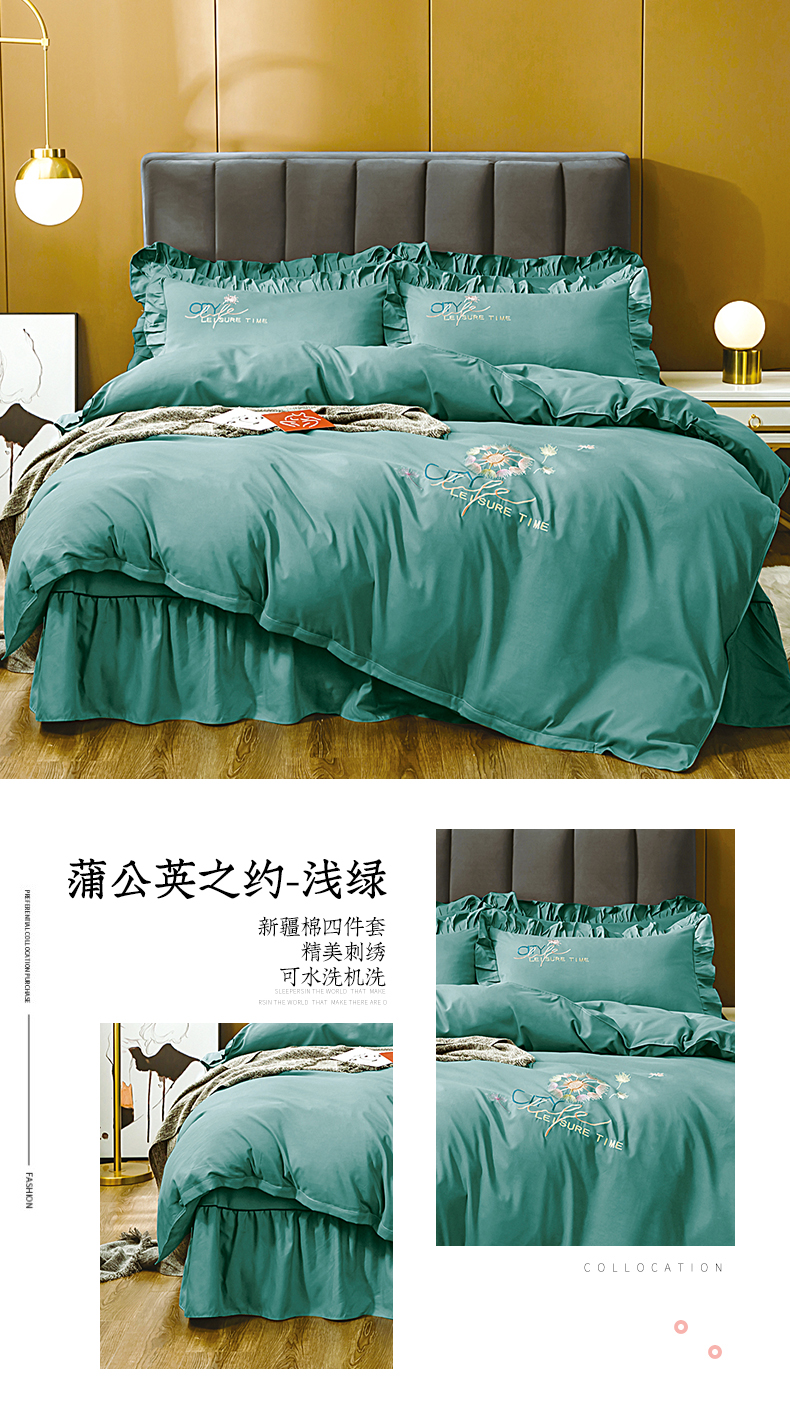商品名称:伊而梦蚊帐 2023新款仿真丝刺绣四件套--蒲公英之约 蒲公英之约-浅绿