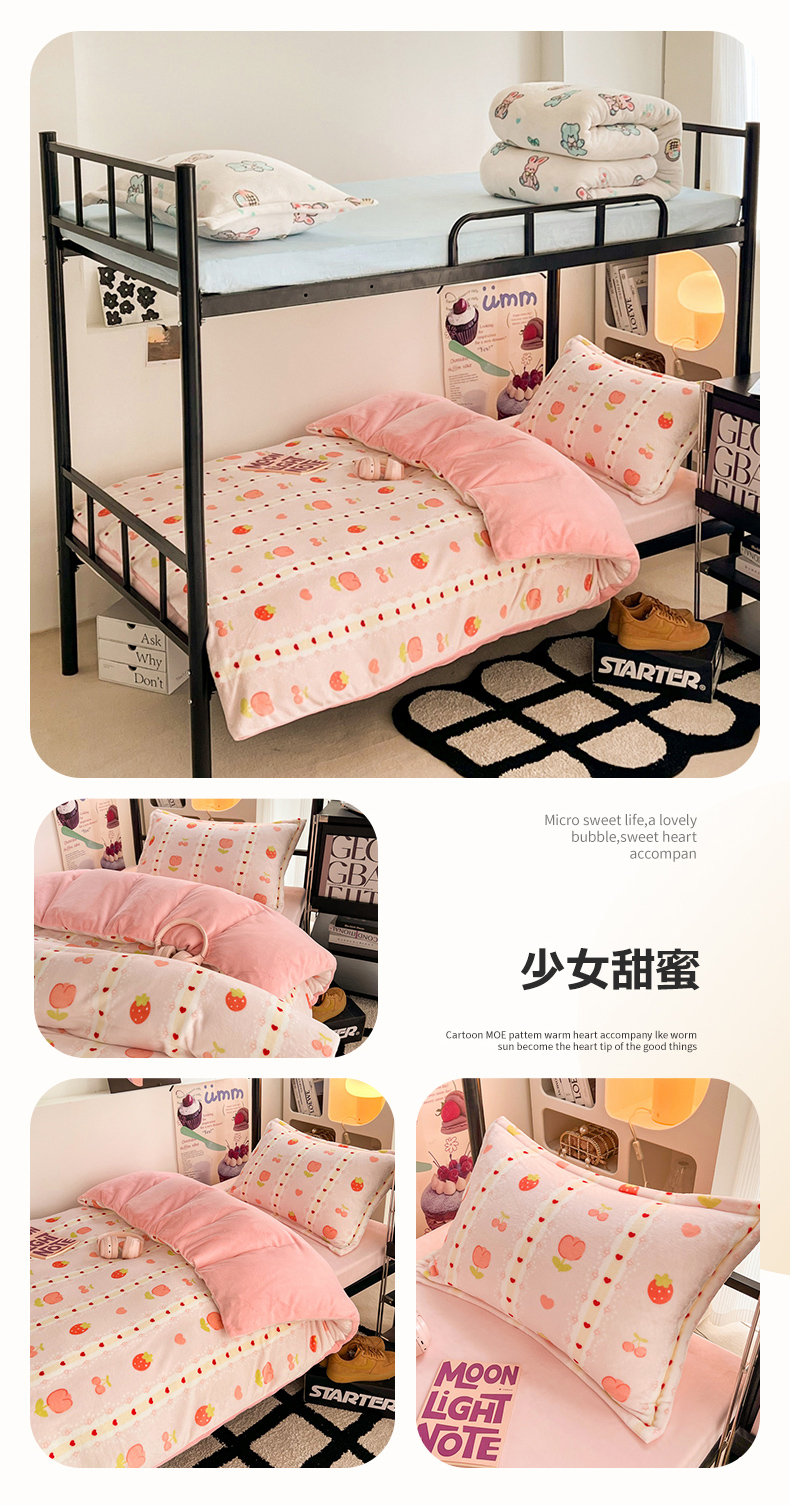 商品名称:川悦生活 2023新款高克重宿舍牛奶绒三件套四件套 少女甜蜜