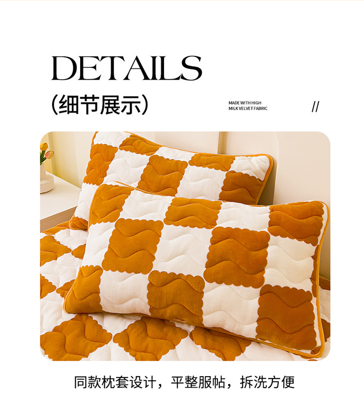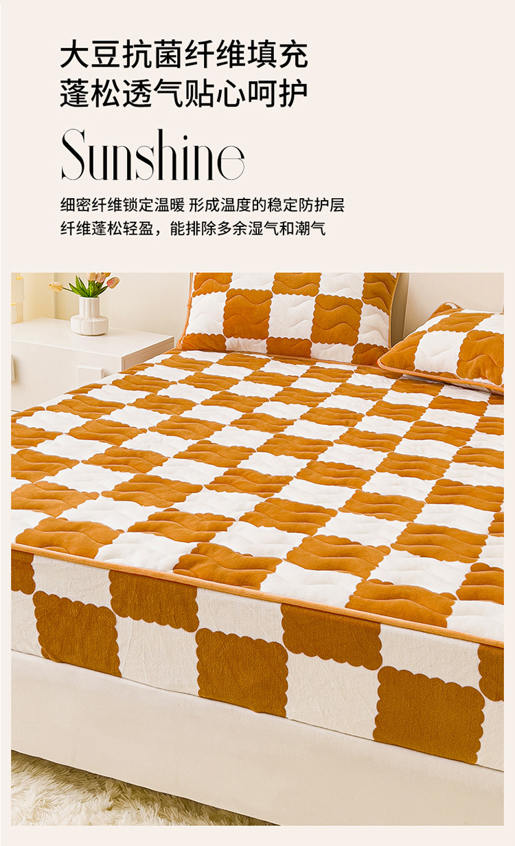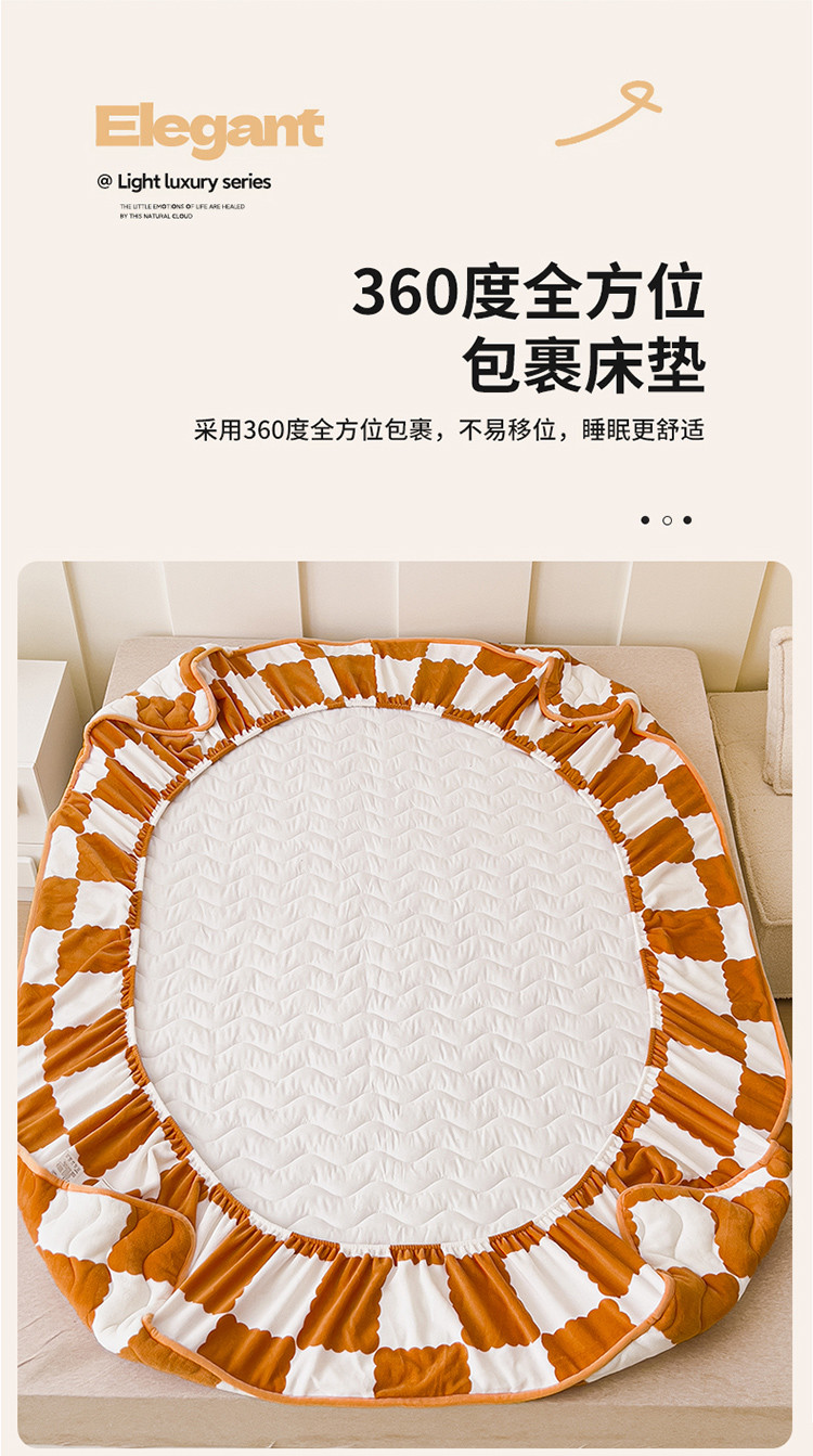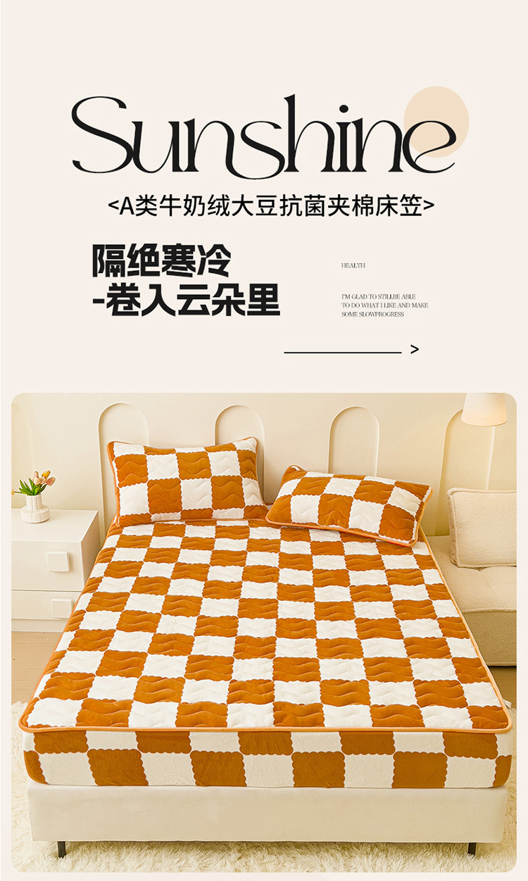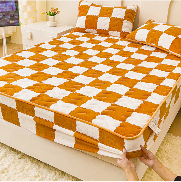 • 91家纺网 家纺一手货源 找家纺 恒尚居 2023新款棋盘格夹棉床笠 棋盘格-橘黄