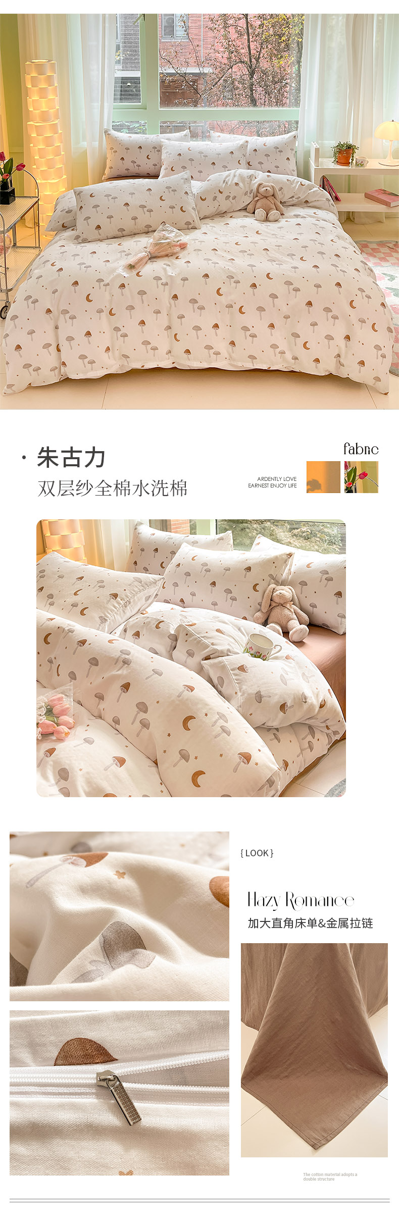 商品名称:ab家纺 2024新款全棉双层纱印花四件套 朱古力