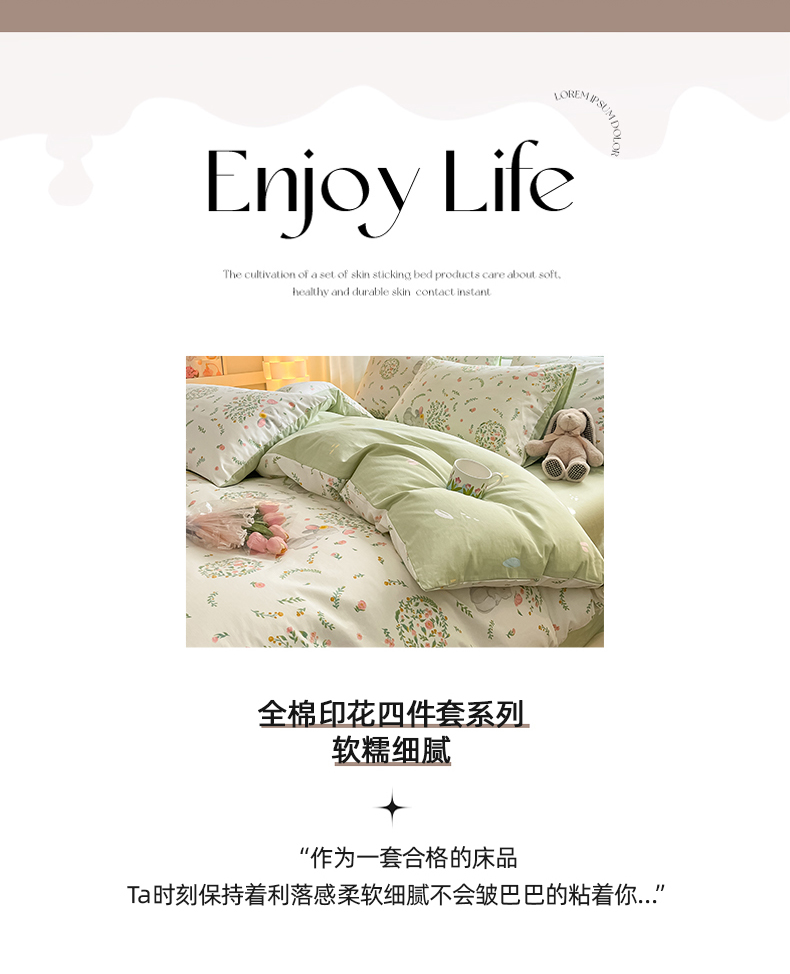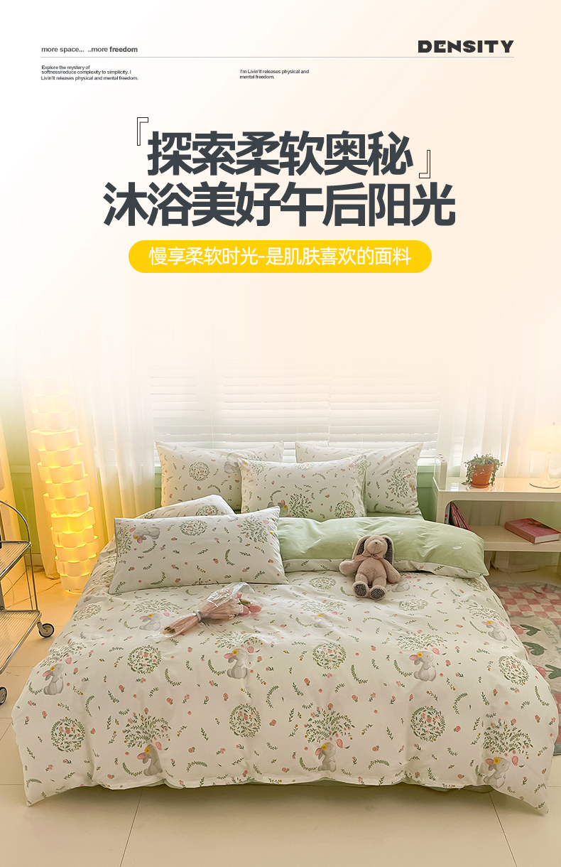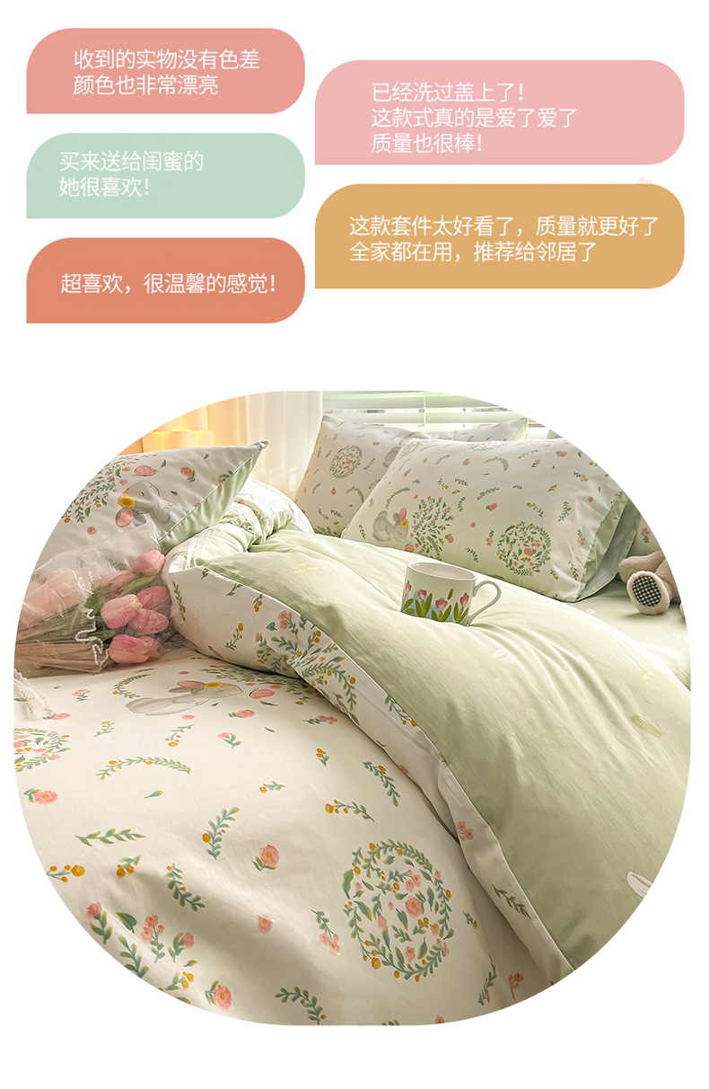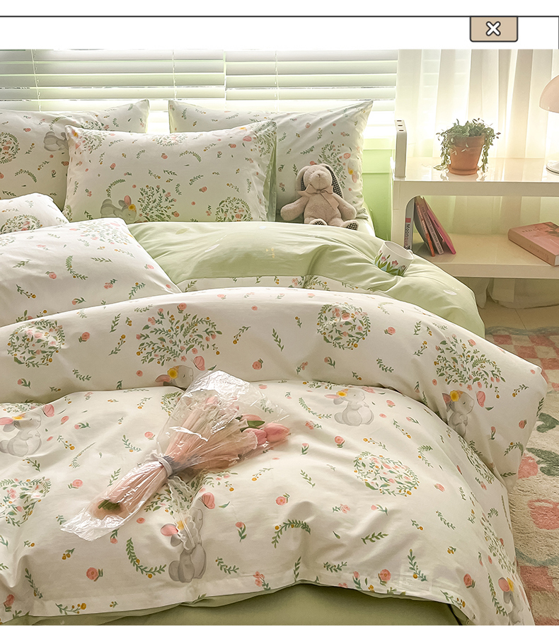 曼之夏 2024新款13372全棉印花四件套 温婉小兔