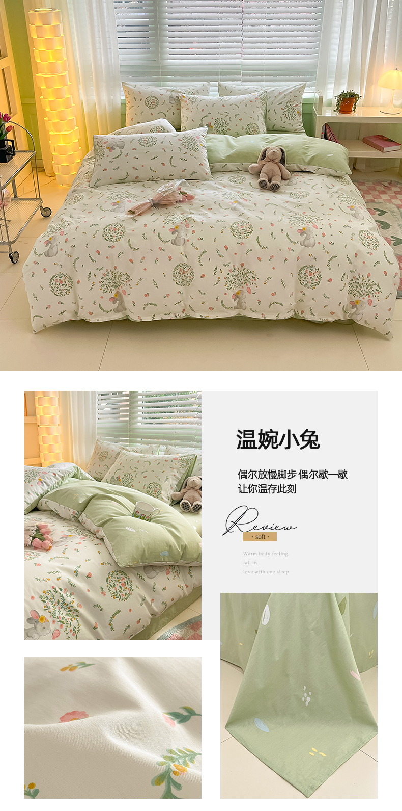 商品名称:曼之夏 2024新款13372全棉印花四件套 温婉小兔