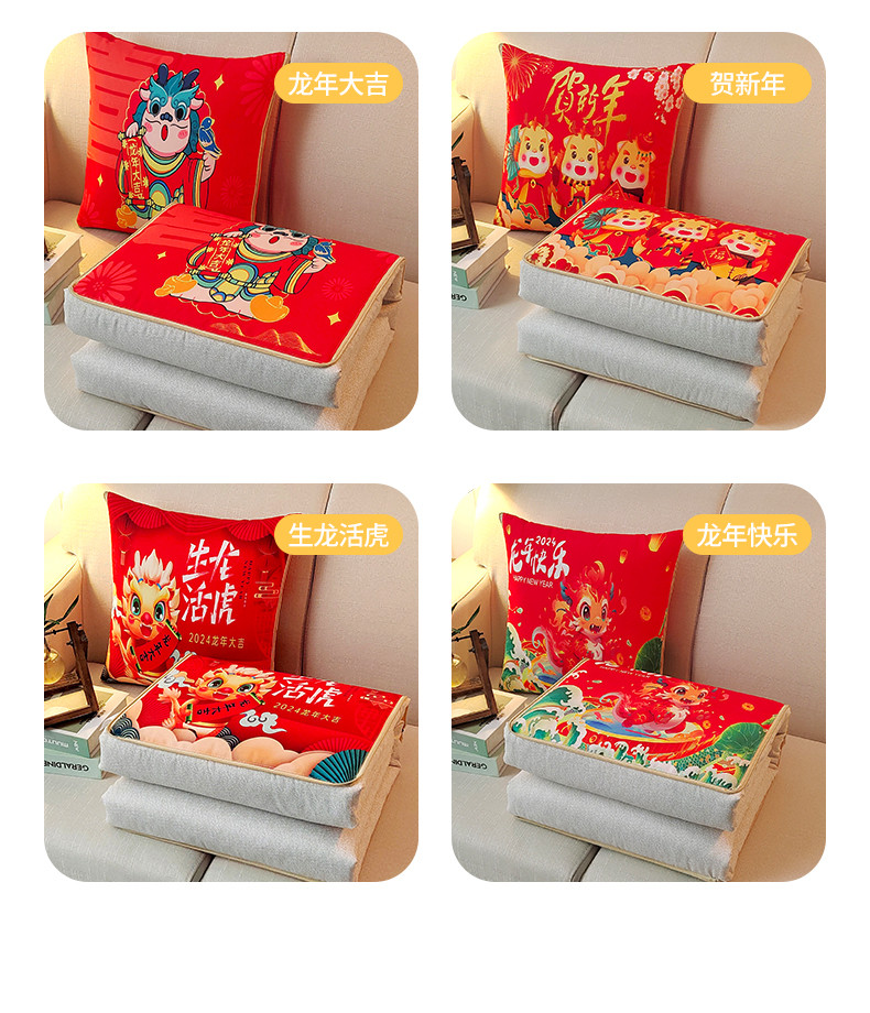 (总)伊可爱 2024新款磨毛多功能龙年抱枕被,福到龙年,龙年暴富,龙年大吉,龙年快乐,龙腾虎跃,龙运昌盛,三龙贺春,生龙活虎