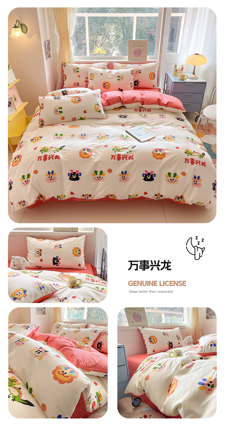 (总)雅居纺家纺 2022新款13070全棉印花四件套,波纹,多彩,简笔画,莓关系,奶油绿豹纹,倾心,数字