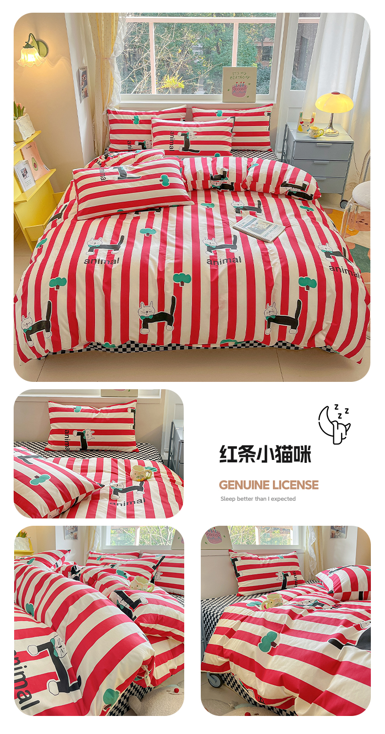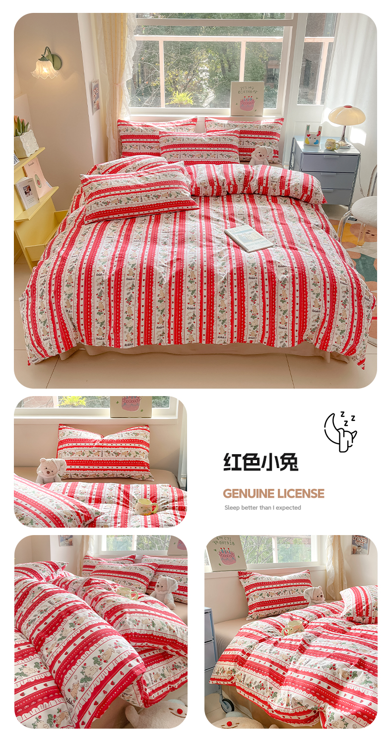 (总)雅居纺家纺 2022新款13070全棉印花四件套,草莓蝴蝶结,俄罗斯方块,黑白蝴蝶结,很嗨兔,可爱小兔,快乐花海,牛奶纹,胖胖鸭,棋盘格,日月争辉,西部恐龙,小情调,小桃桃