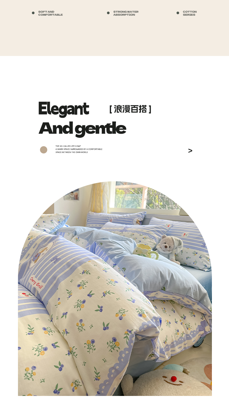 (总)雅居纺家纺 2026新款全棉小清新印花四件套,HI小狗,暴富,草莓蓝花,粉色熊熊,红红火火,简笔画小兔,蓝条花朵兔,绿色小兔,森林乐园,绅士快乐狗,贪睡猫猫,贪玩家族,贪玩小兔兔,祥瑞,小黑猫咪,幸福花朵,幸福兔-蓝,熊熊小汽车,紫色千鸟格