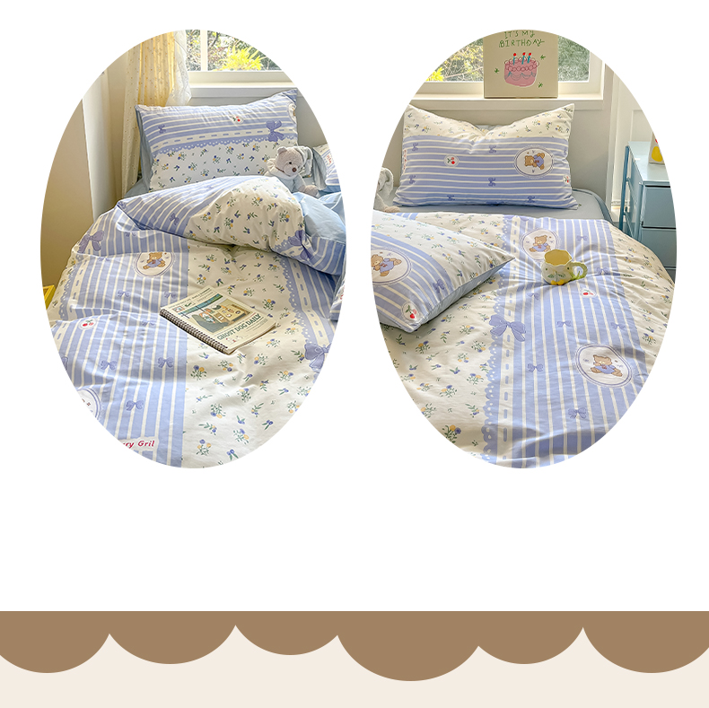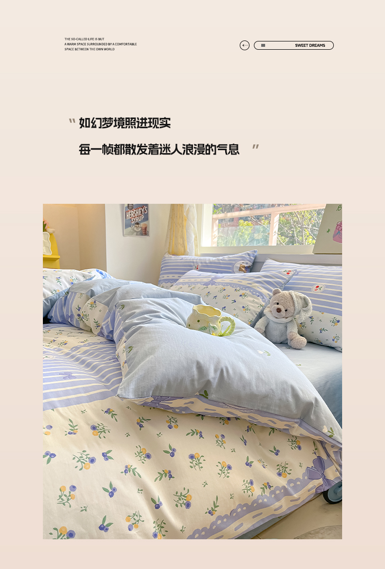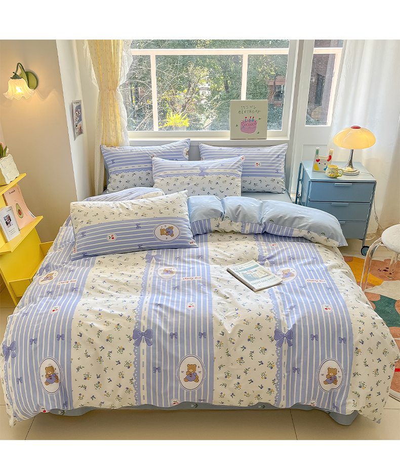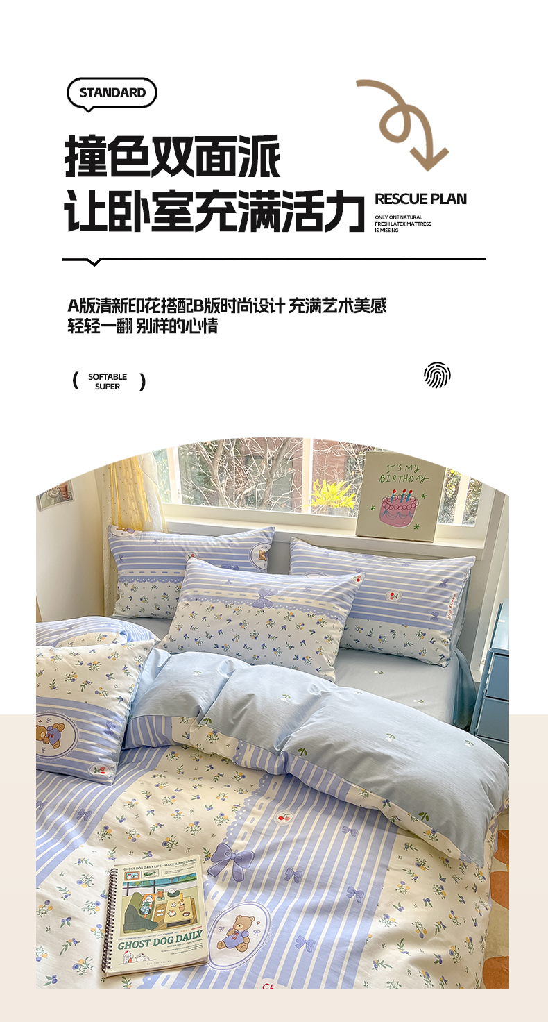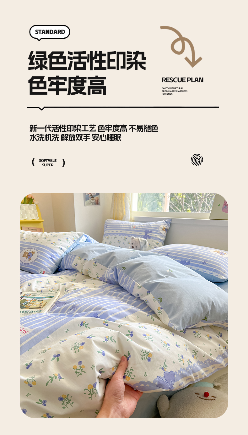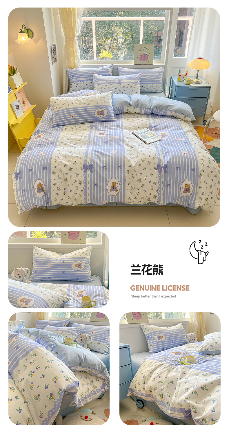 商品名称:雅居纺 2024新款高密全棉13070印花四件套 兰花熊