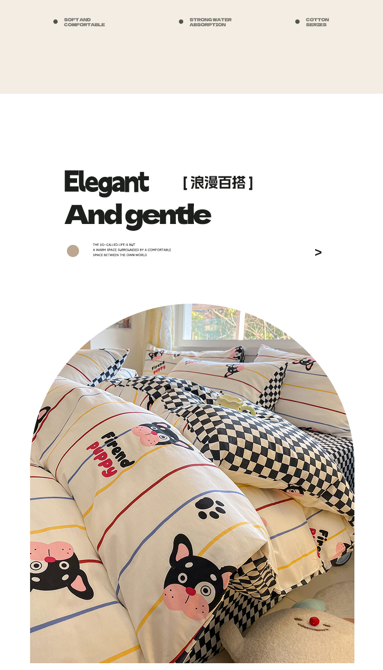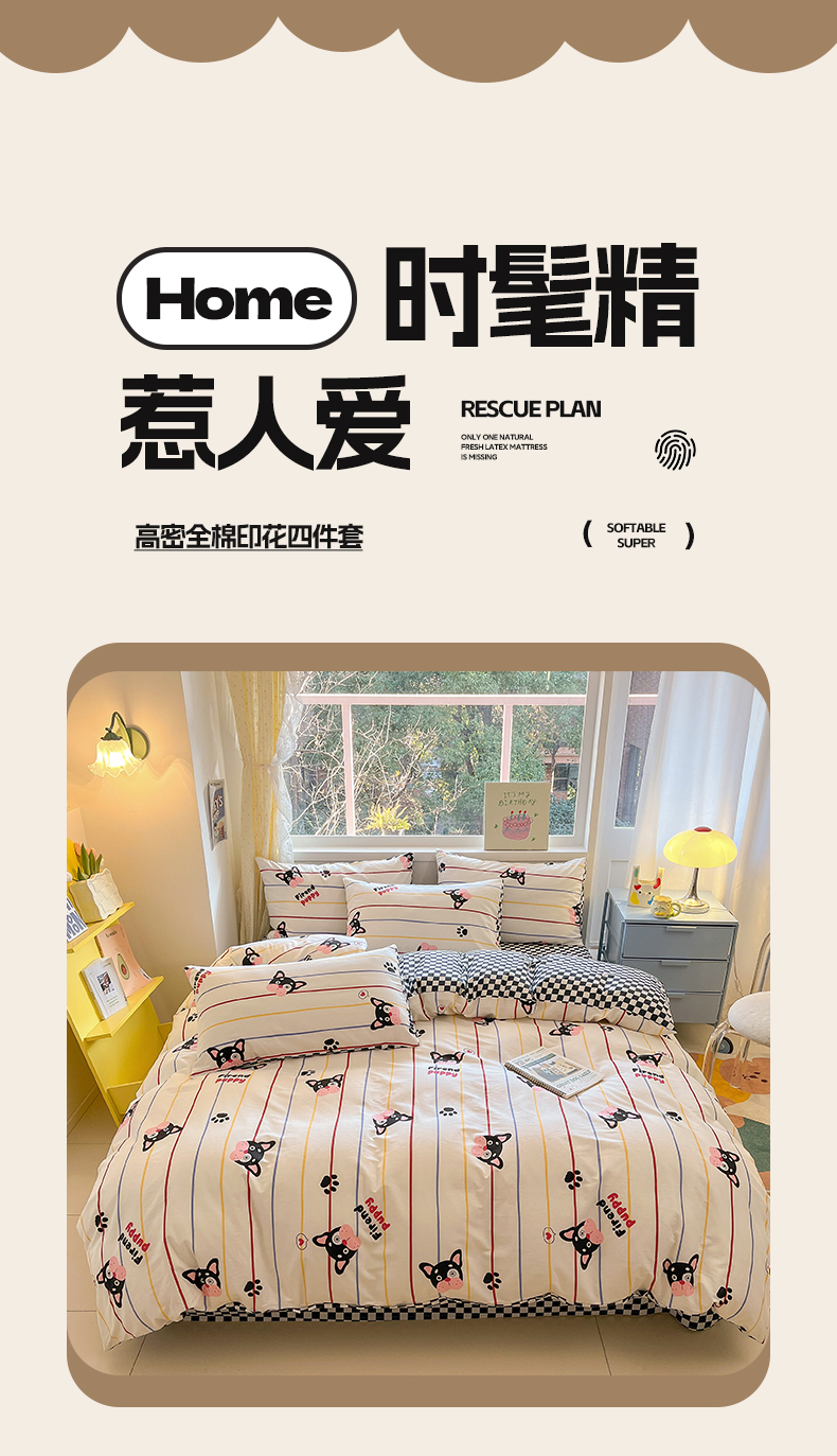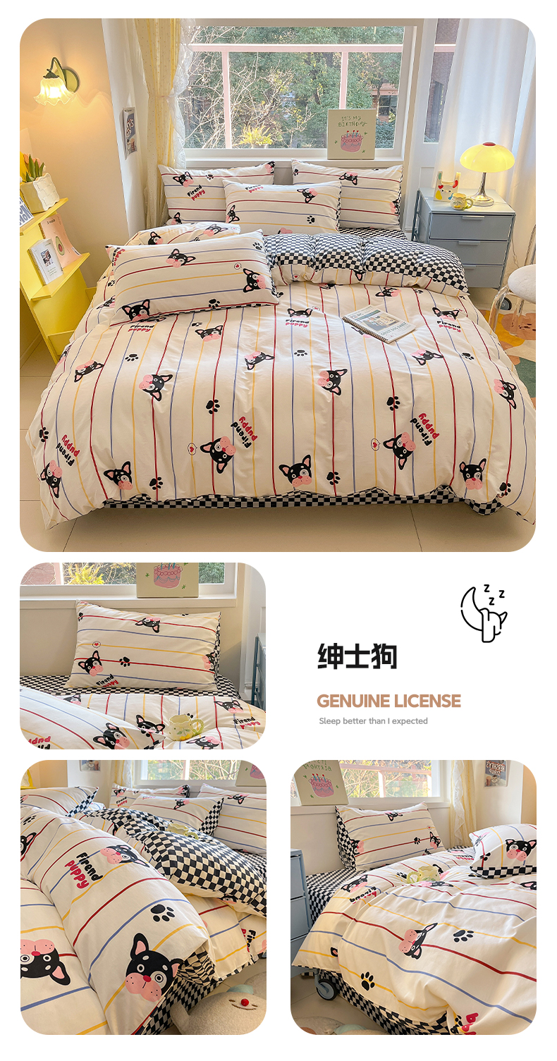 雅居纺 2024新款高密全棉13070印花四件套 绅士狗