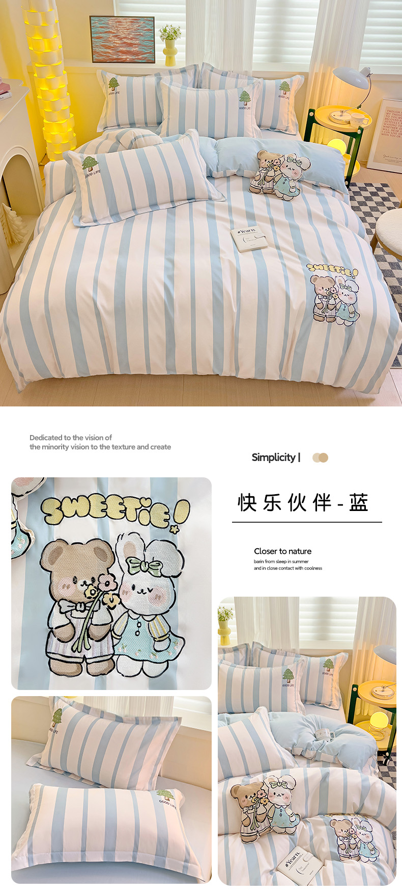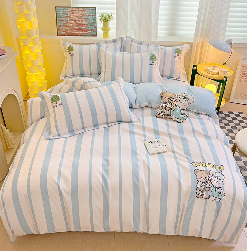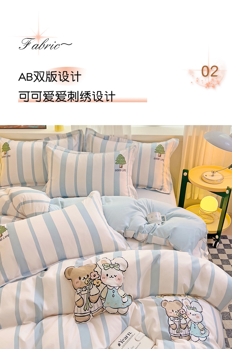 当前位置: 91家纺网 > 商品网购 > 床品套件 > 四件套 > 普通磨毛四件套 > 娜娜 2024新款磨毛水洗棉刺绣四件套 快乐伙伴-蓝