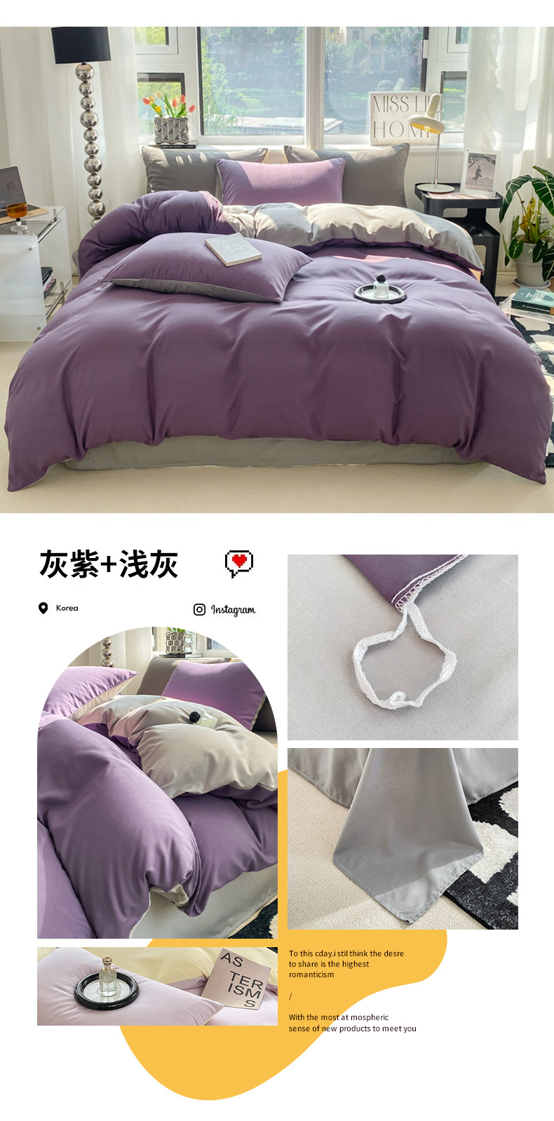 当前位置: 91家纺网 > 商品网购 > 床品套件 > 四件套 > 化纤普通四件套 > 芷凡家纺 2024新款亲肤棉纯色双拼四件套 灰紫+浅灰