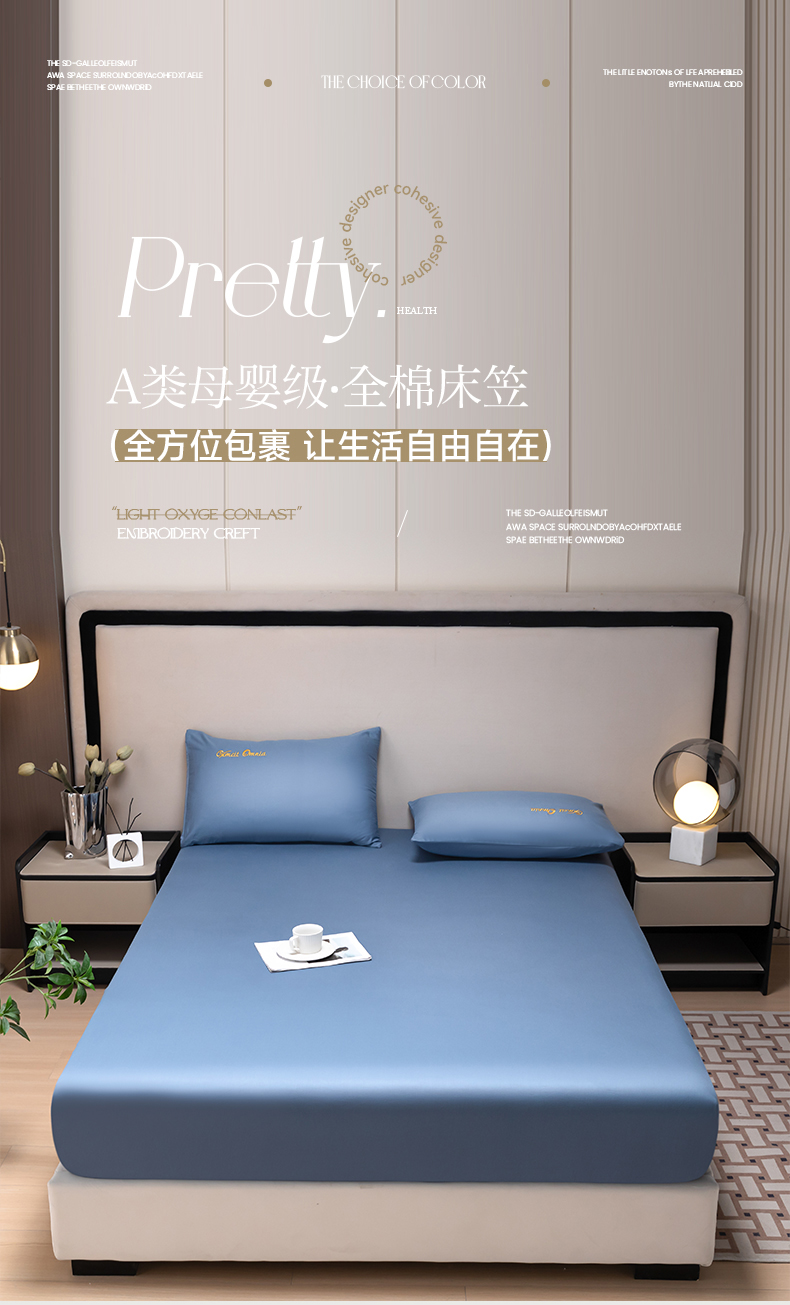 • 91家纺网 家纺一手货源 找家纺 摩妮卡 2025新款A类40纯色全棉床笠 皇家蓝