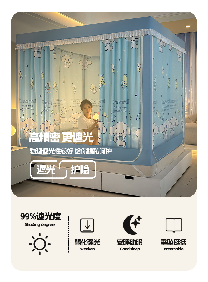 当前位置: 91家纺网 > 商品网购 > 床上用品 > 蚊帐 > 坐床式蚊帐 > 世婕 2025新款坐床式防摔遮光蚊帐(免拼接烤漆支架) 可爱狗