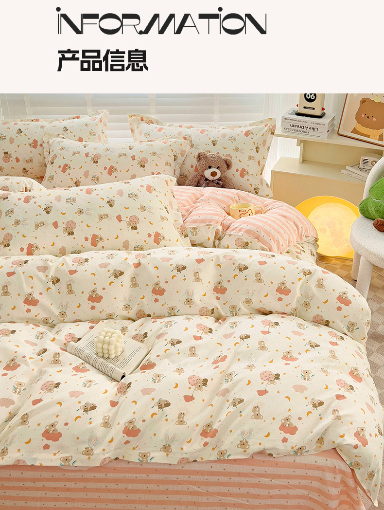 当前位置: 91家纺网 > 商品网购 > 床品套件 > 四件套 > 水洗棉四件套 > 楠沐家纺 2025新款亲肤柔软水洗棉磨毛印花四件套 彩虹猴