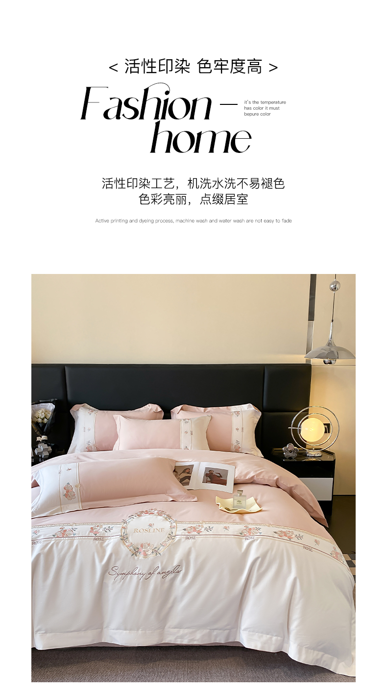 (总)理想家家纺 2025新款纯棉轻奢刺绣四件套-小秘密系列场景二,小秘密 粉,小秘密 黄,小秘密 蓝