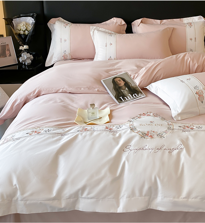 (总)理想家家纺 2025新款纯棉轻奢刺绣四件套-小秘密系列,小秘密-白,小秘密-粉,小秘密-蓝
