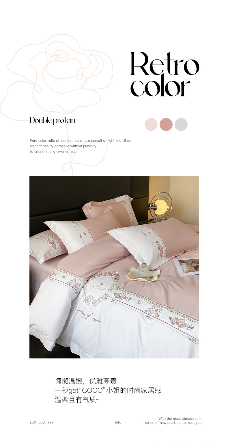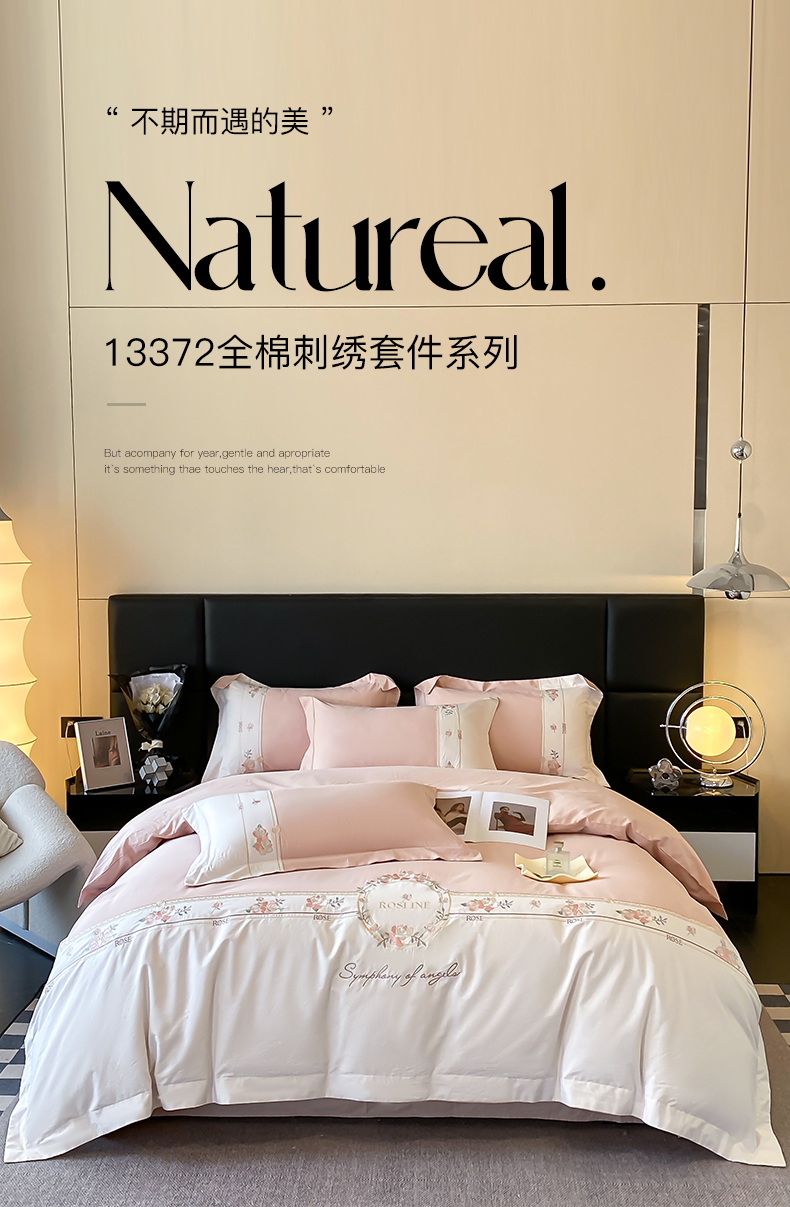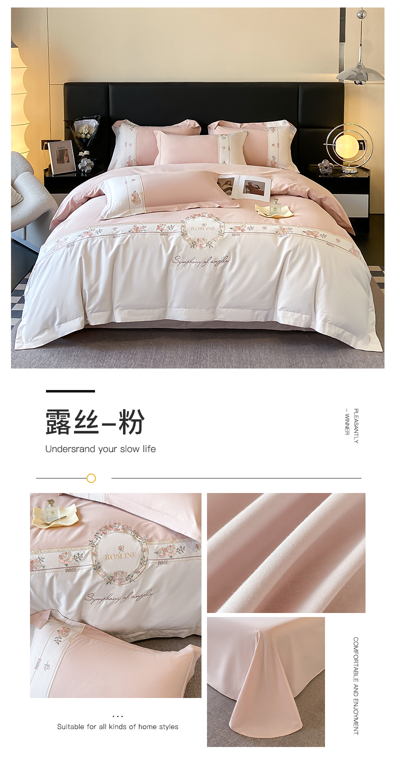 商品名称:理想家家纺 2024新款全棉刺绣四件套13372露丝 露丝粉