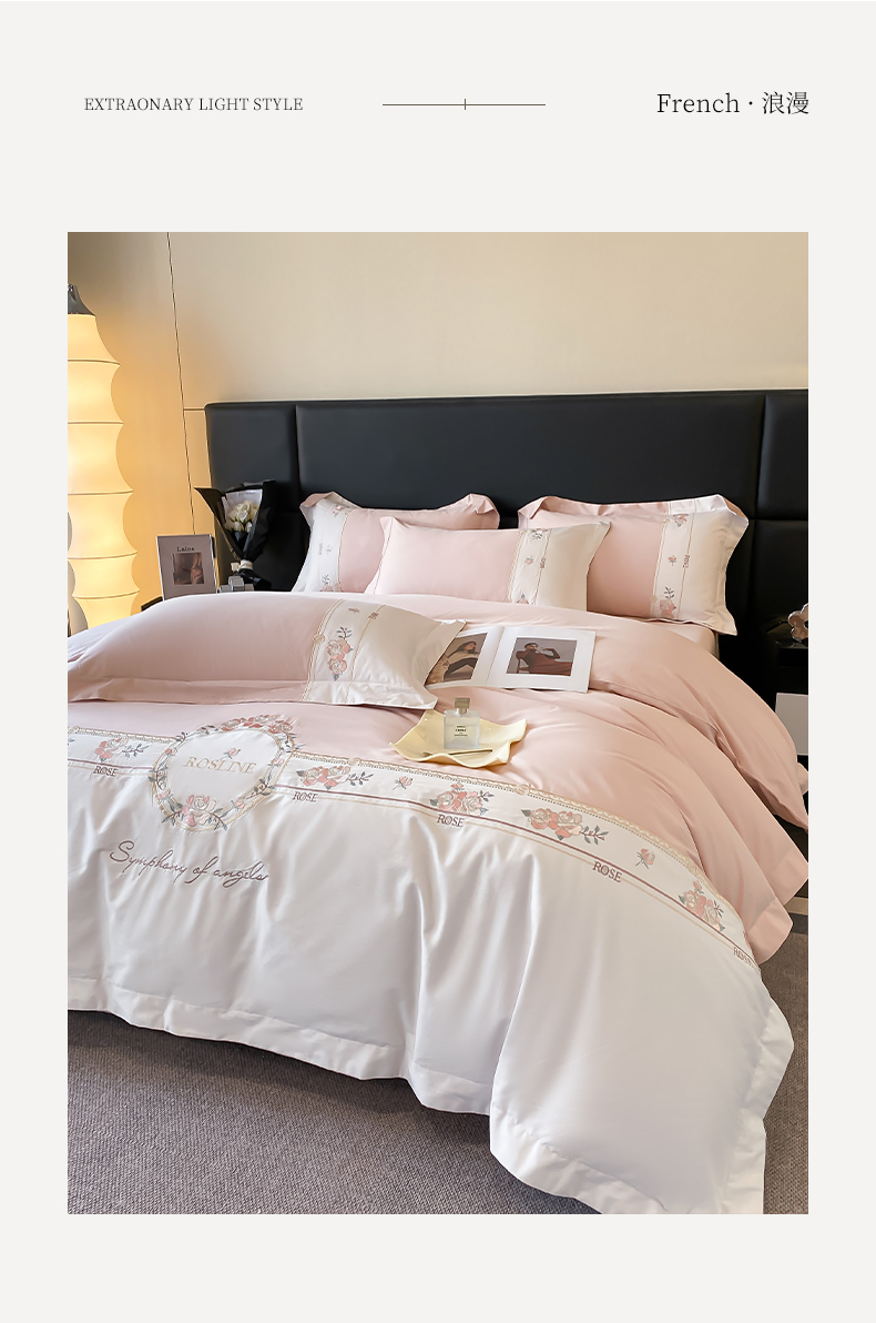理想家家纺 2024新款全棉刺绣四件套13372露丝 露丝粉