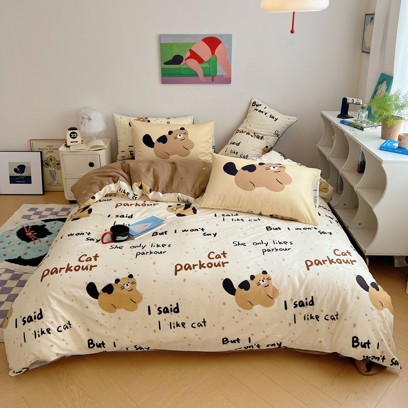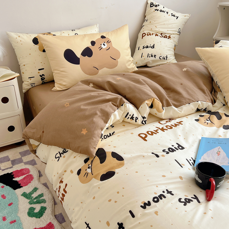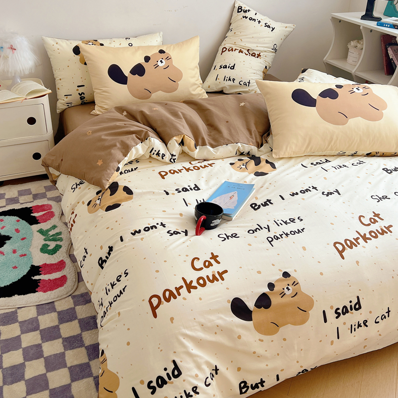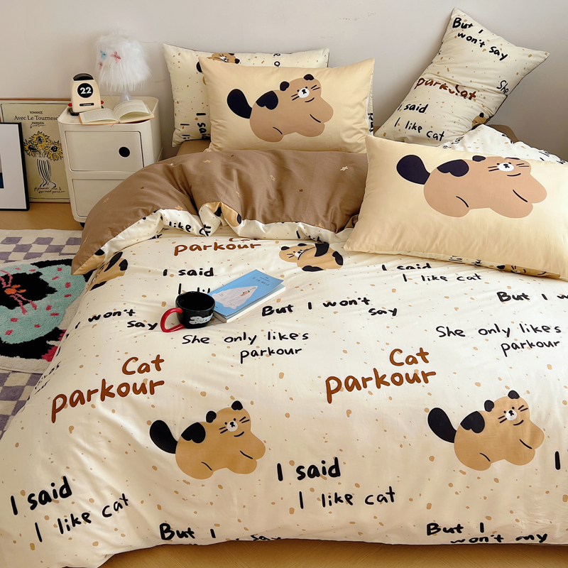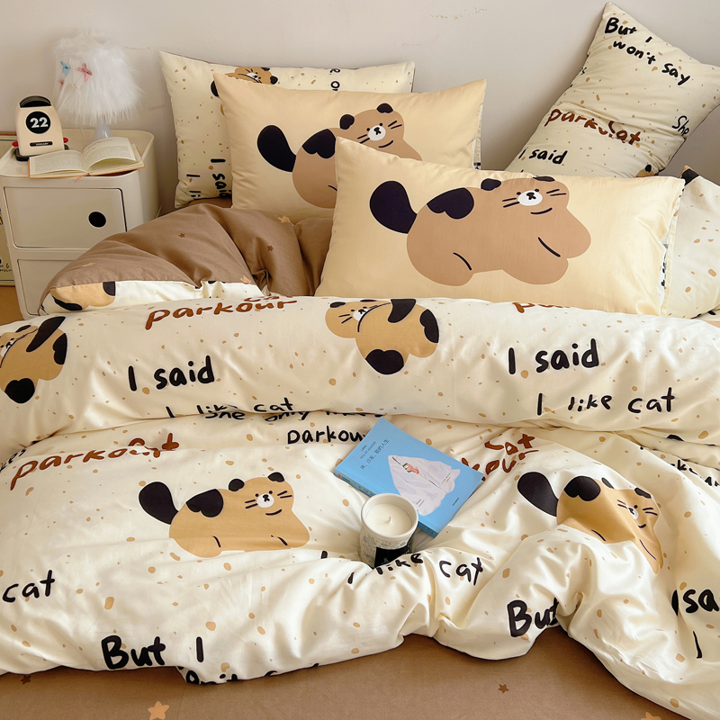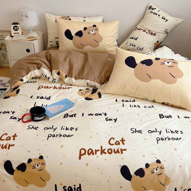 桃喜 2024新款全棉卡通数码印花混搭系列四件套 哈皮小猫