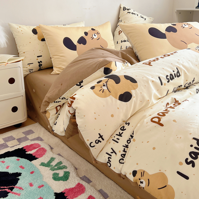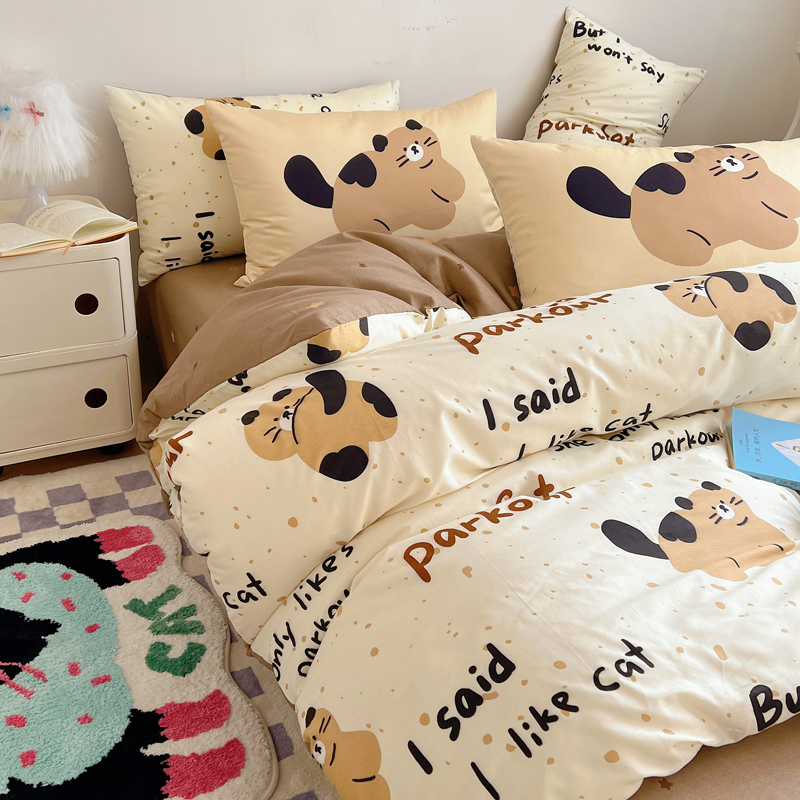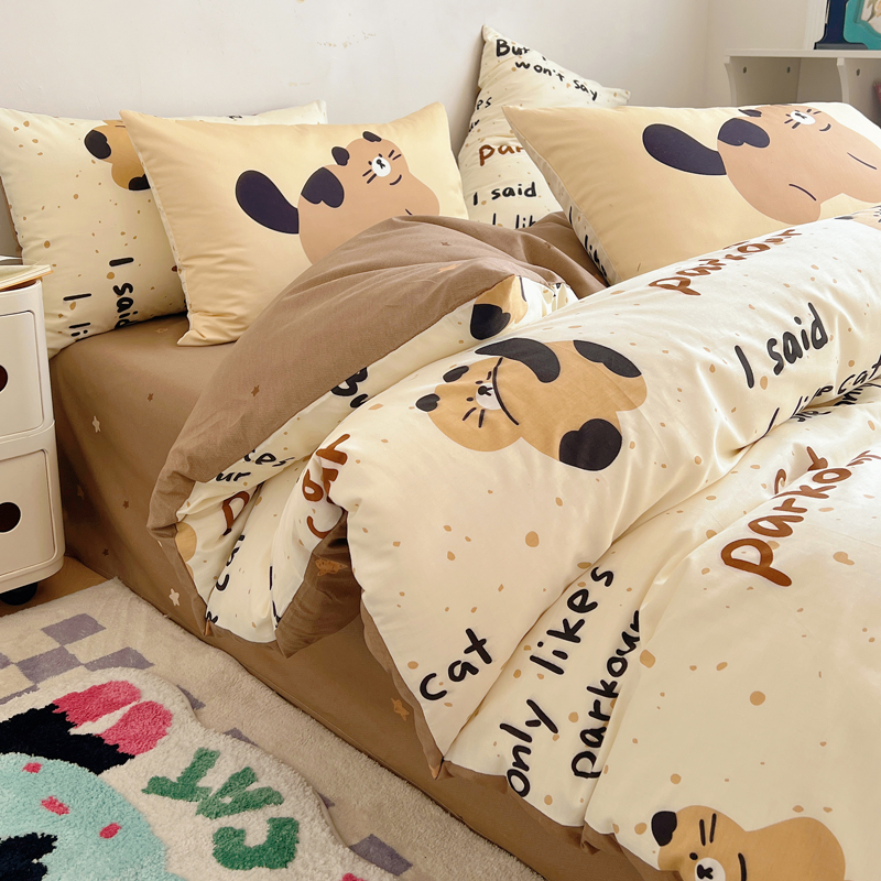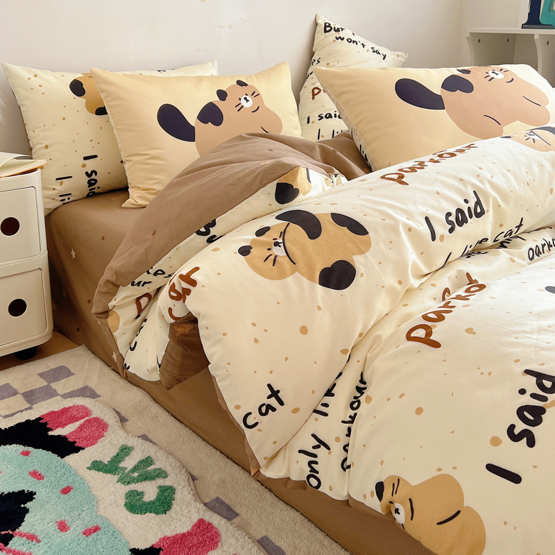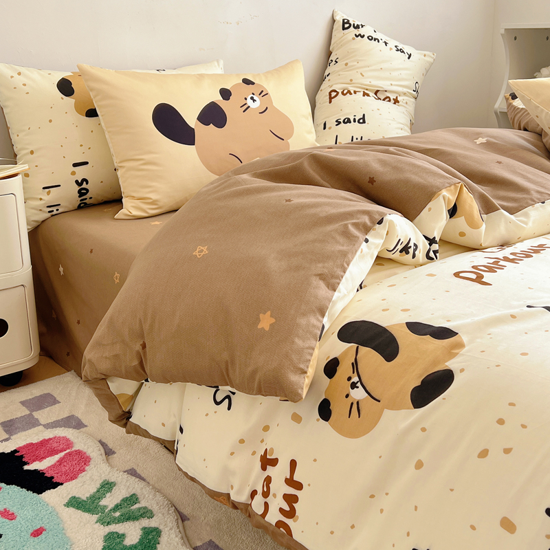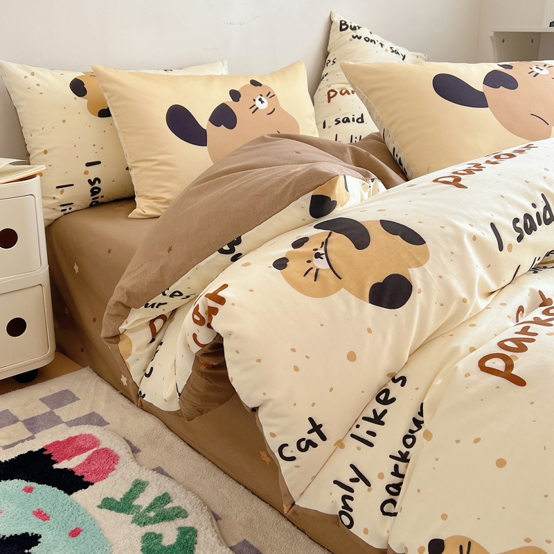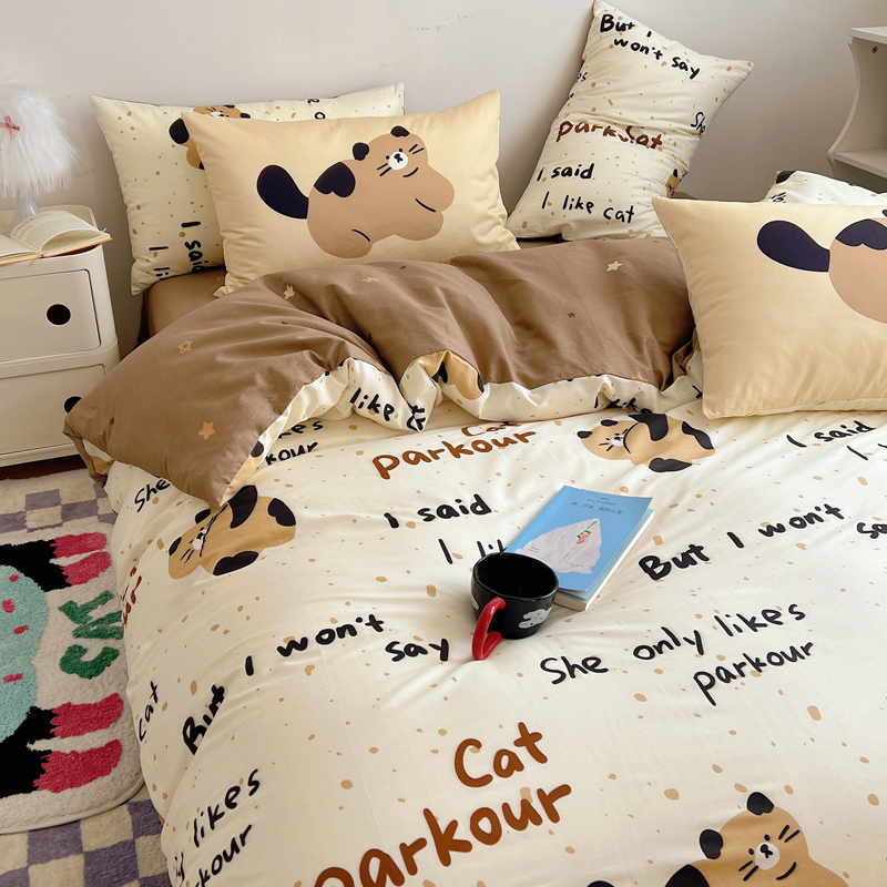 桃喜 2024新款全棉卡通数码印花混搭系列四件套 哈皮小猫