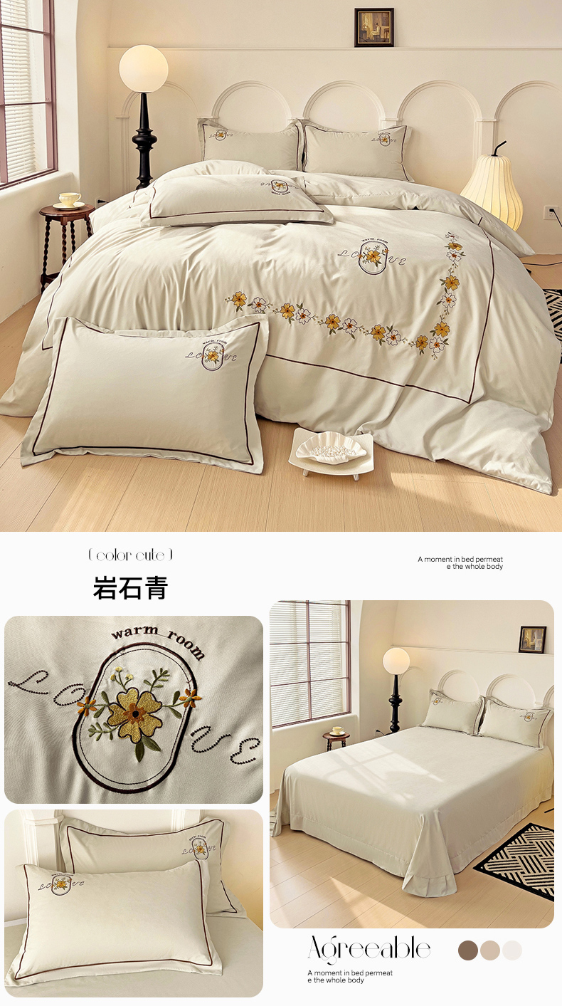 庭笙 新款云棉新中式绣花款四件套 岩石青