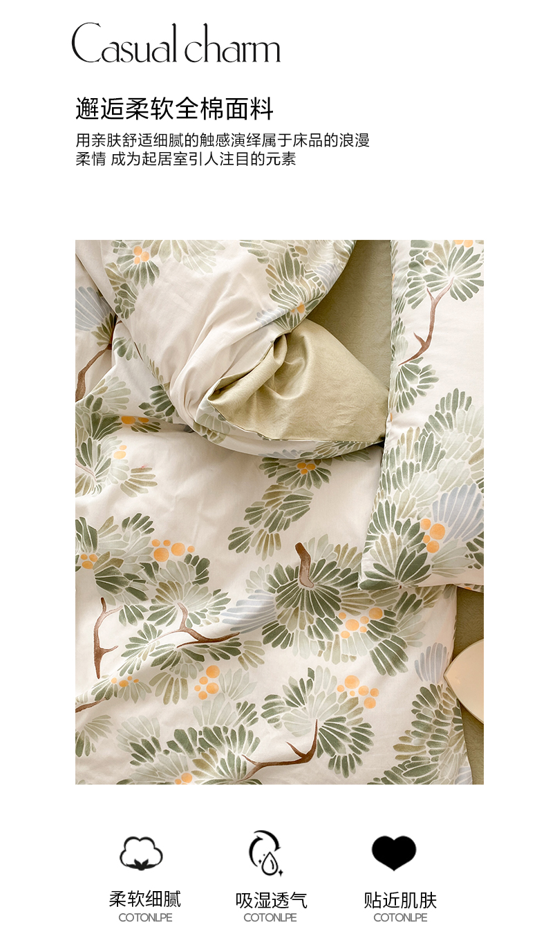 宜家坊 2024新款全棉喷气13070小清新印花四件套-拍摄一 萝樱
