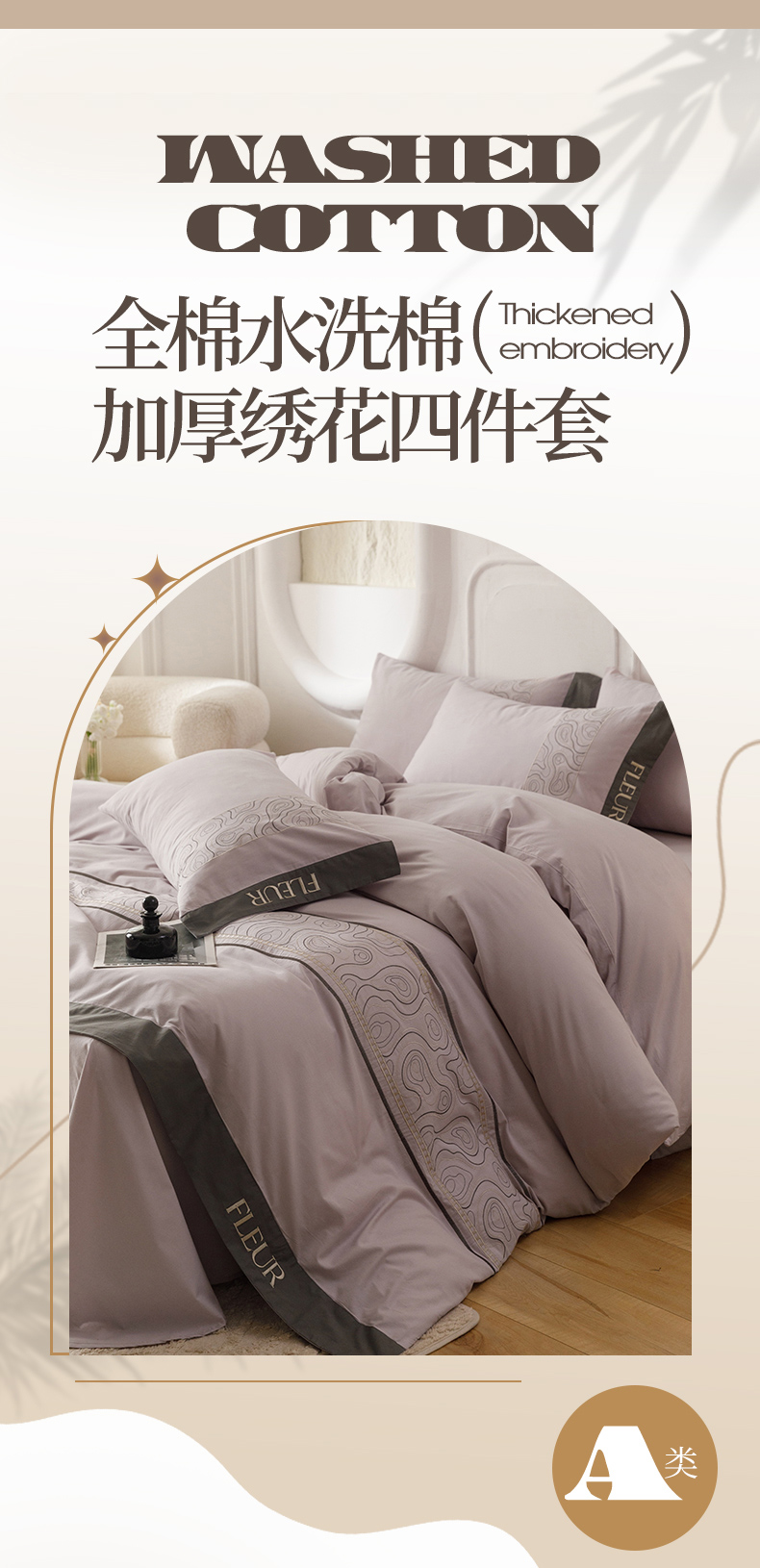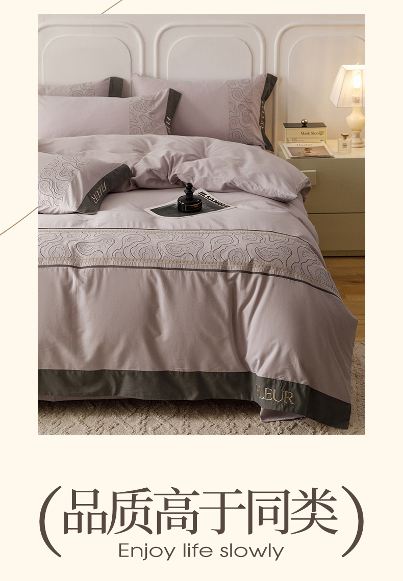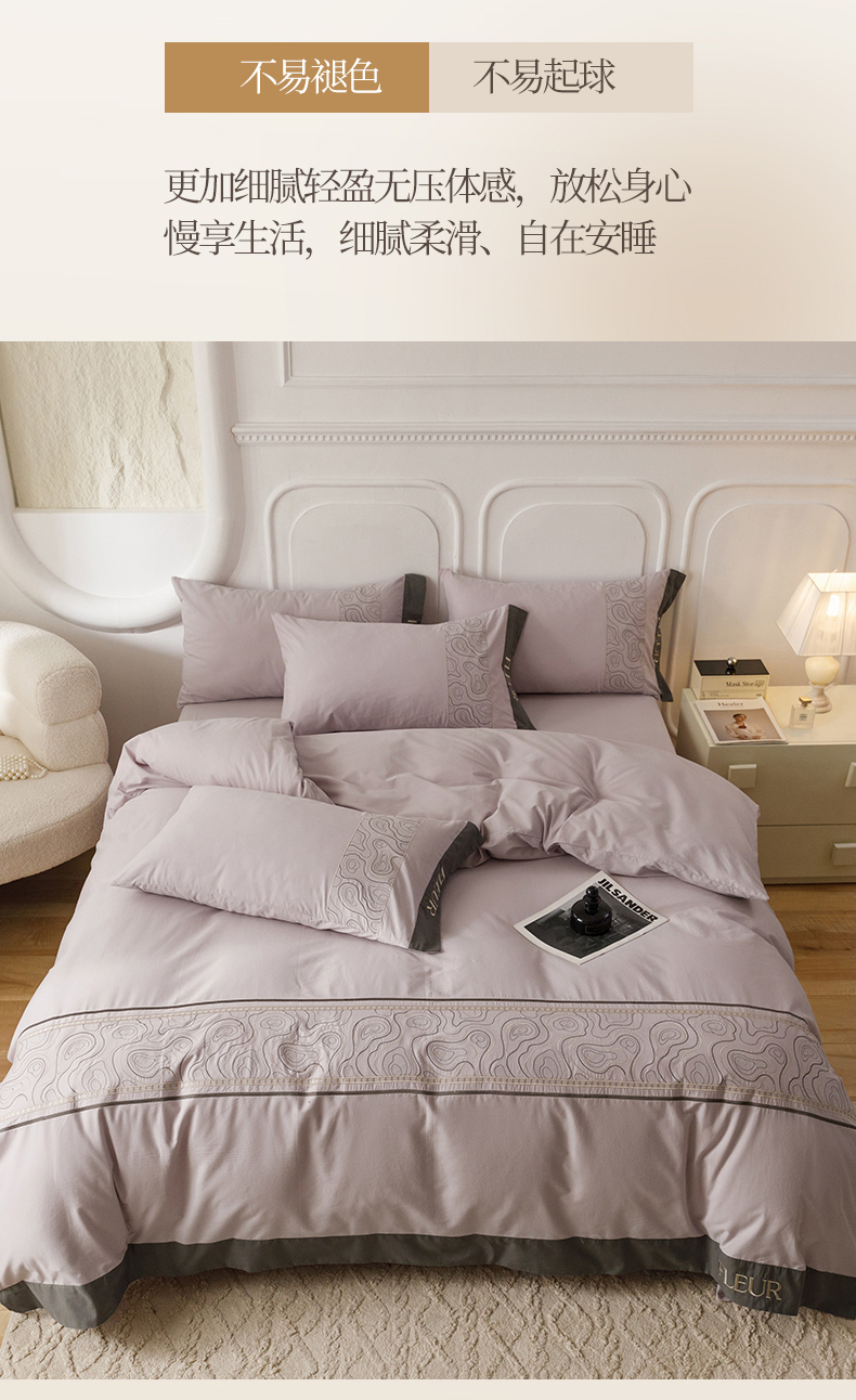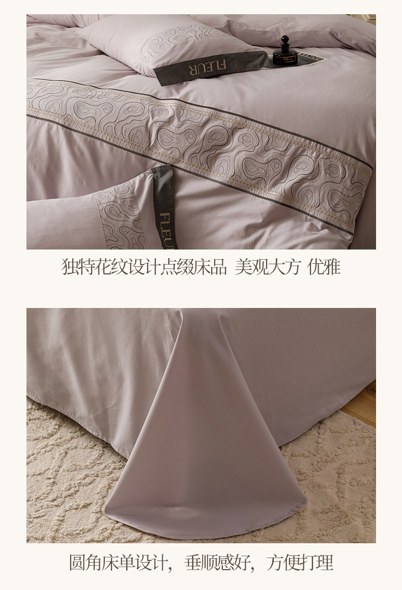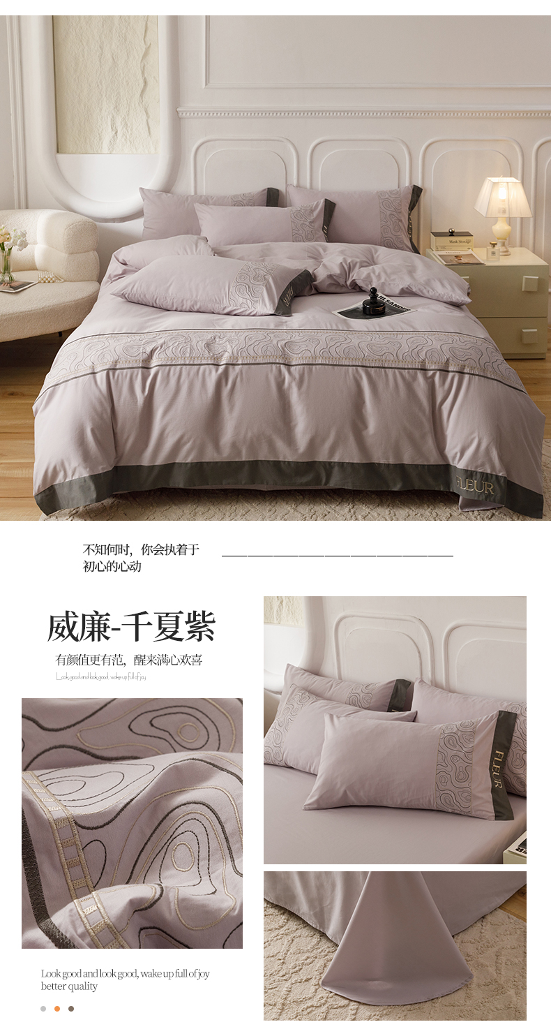 当前位置: 91家纺网 > 商品网购 > 床品套件 > 四件套 > 水洗棉四件套 > 艾莱家纺 2024新款A类全棉水洗棉加厚绣花四件套 威廉-千夏紫