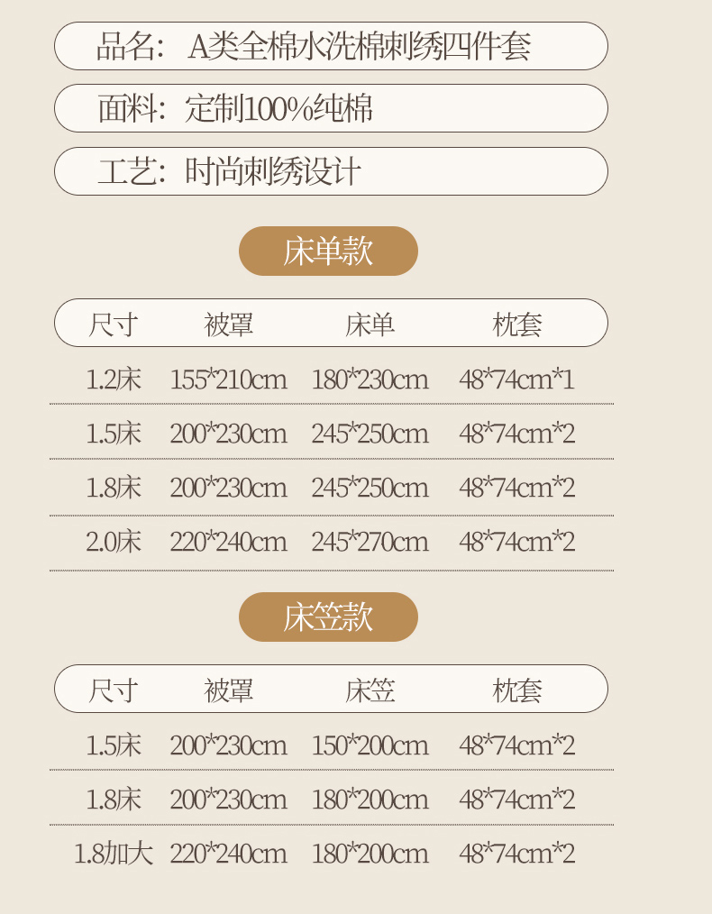1.8m被套加大床笠款四件套 | ¥215.00 |