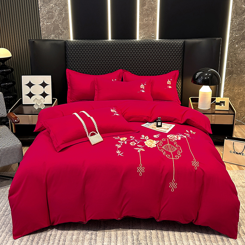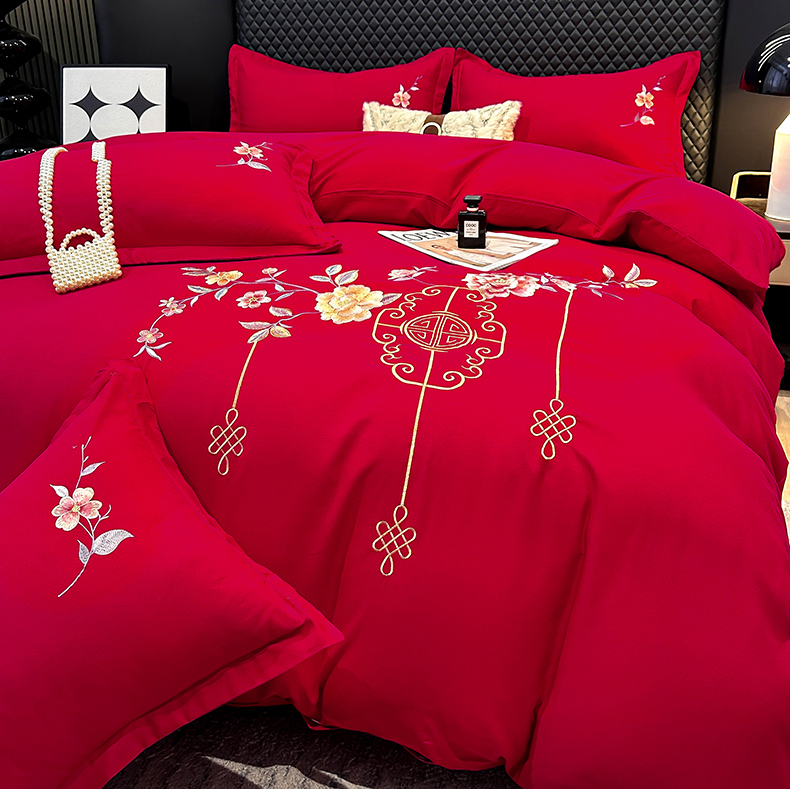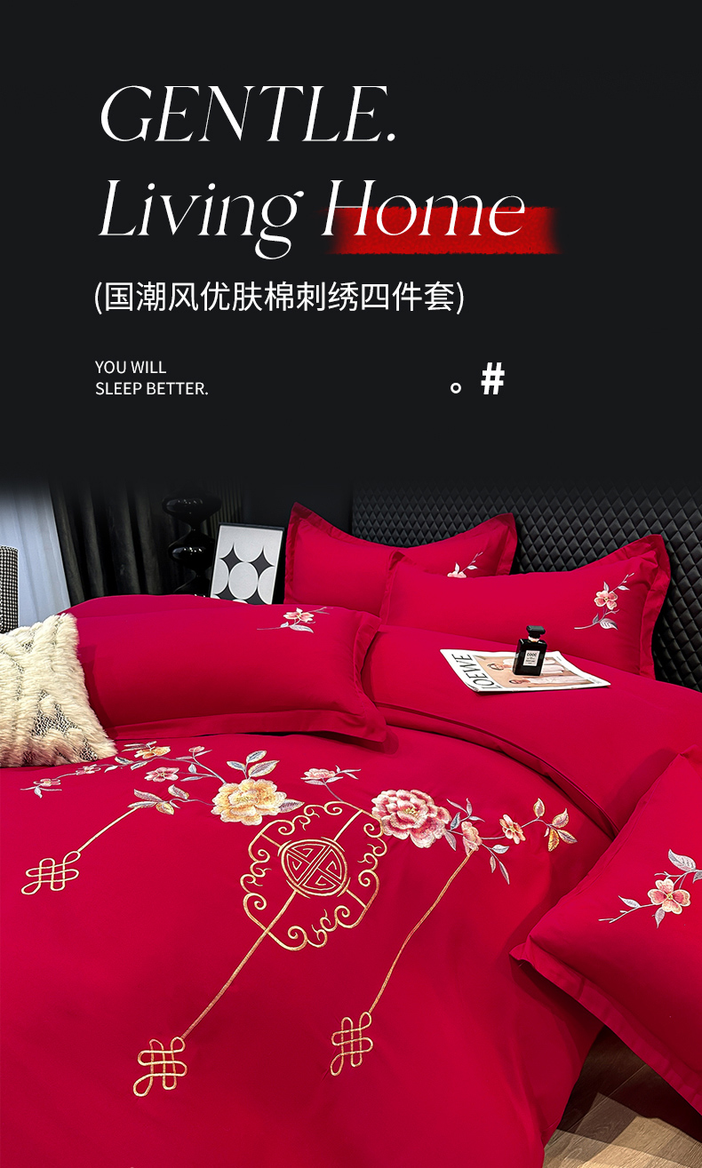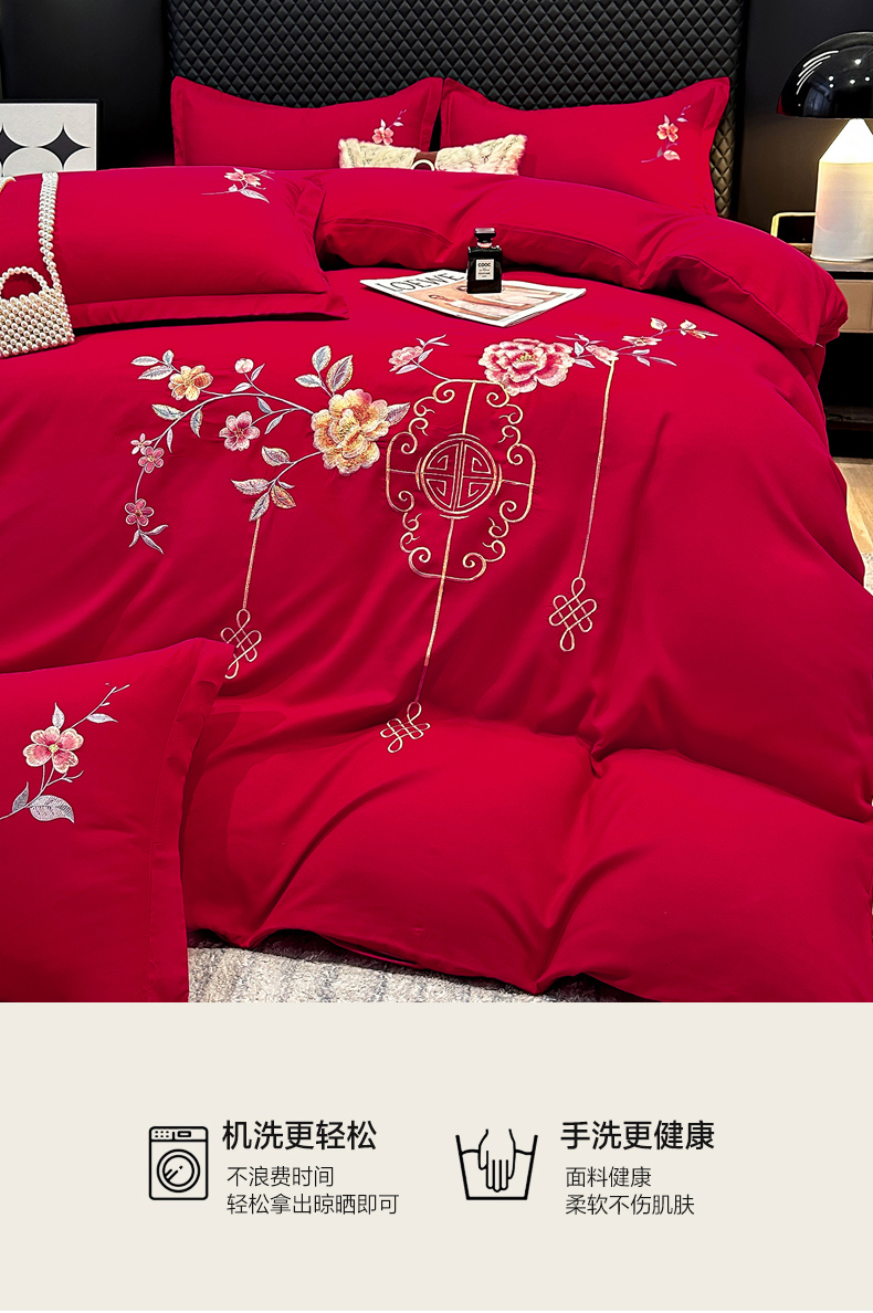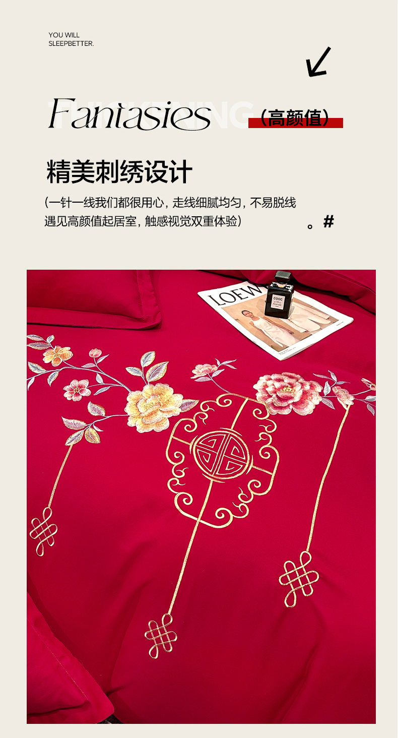 商品名称:帝菲妮 2025新款国潮风暖氧优肤棉刺绣四件套-花开富贵 花开富贵-红色