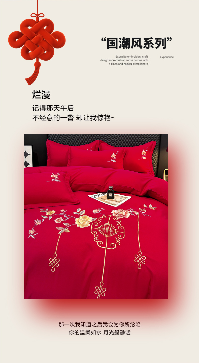 (总)帝菲妮 2025新款国潮风高克重超柔水洗棉针织棉糯小棉带质检报告刺绣四件套--醉美人,醉美人-粉玉,醉美人-红色,醉美人-蓝色,醉美人-浅紫