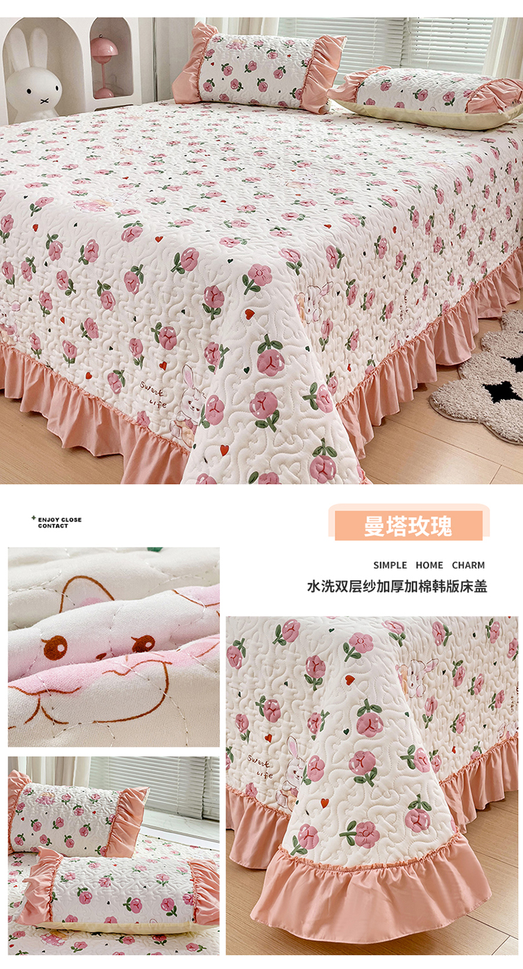 商品名称:纽缦家纺 2024水洗双层纱加厚加棉韩版床盖 曼塔玫瑰