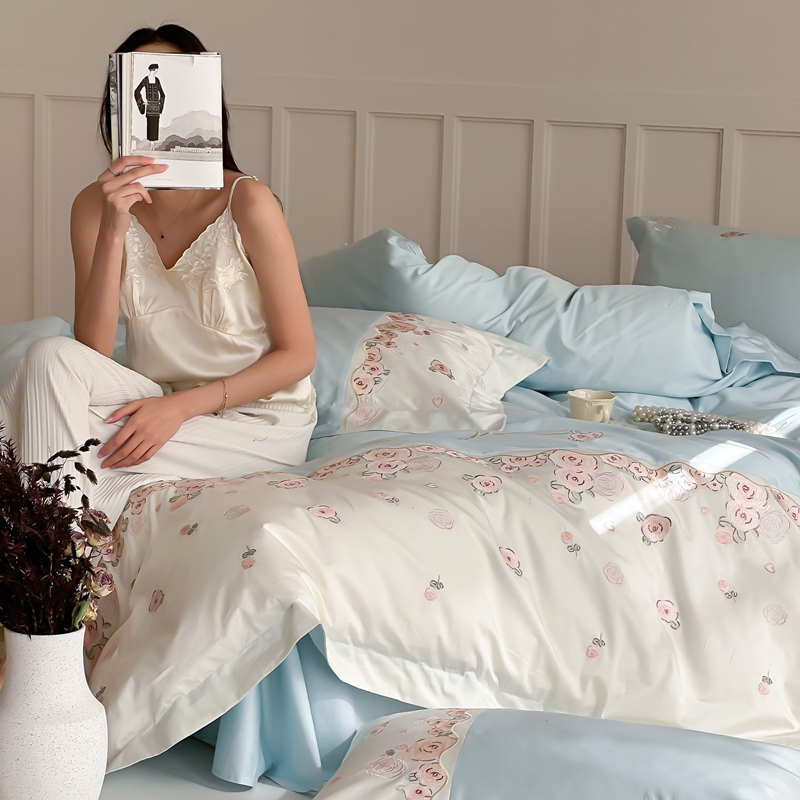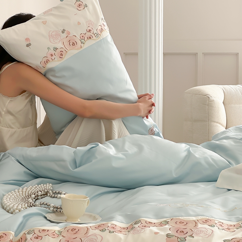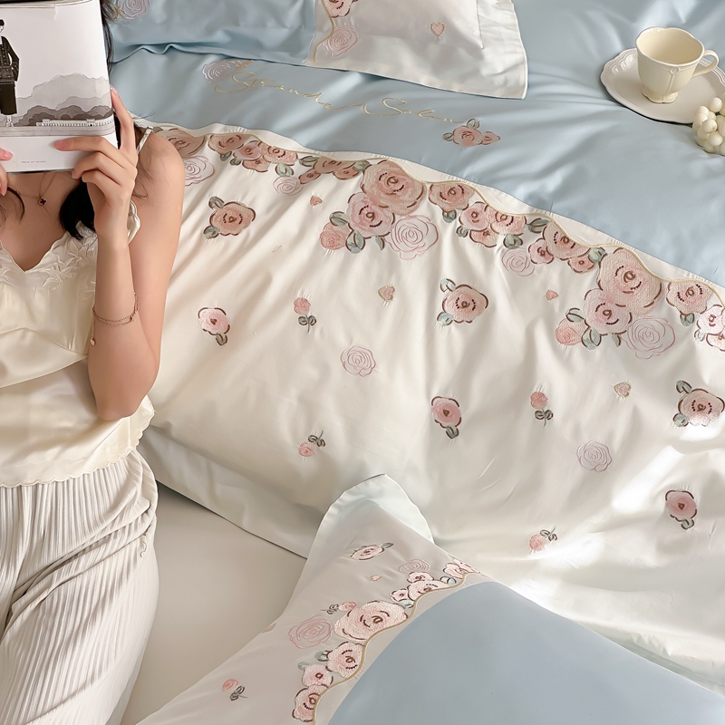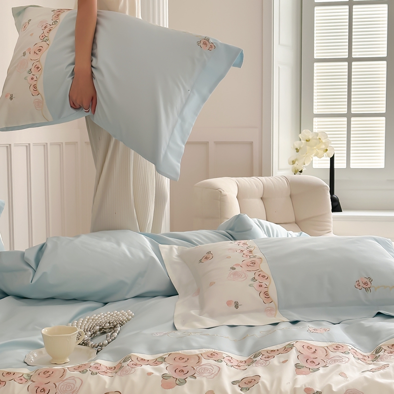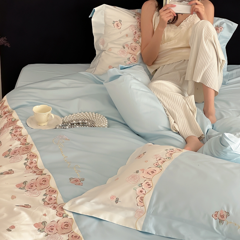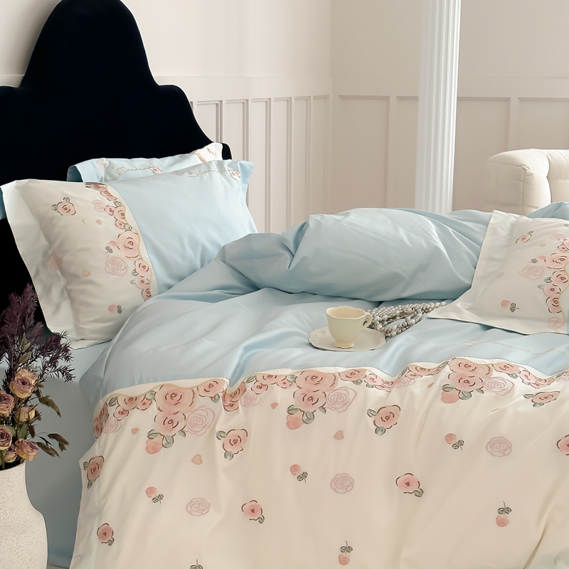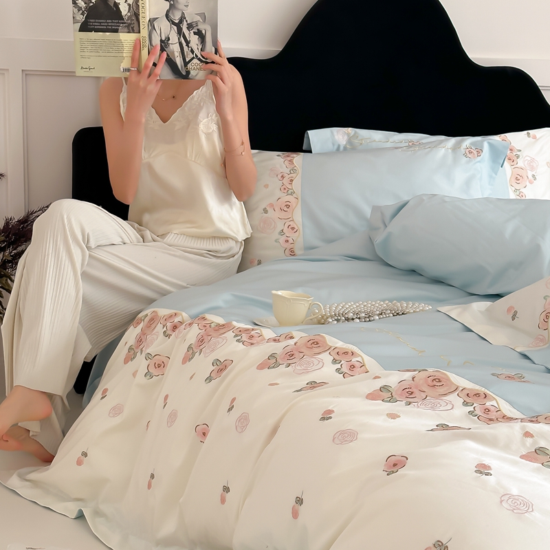 2024新款100支全棉四件套-玫瑰物语 北卡蓝