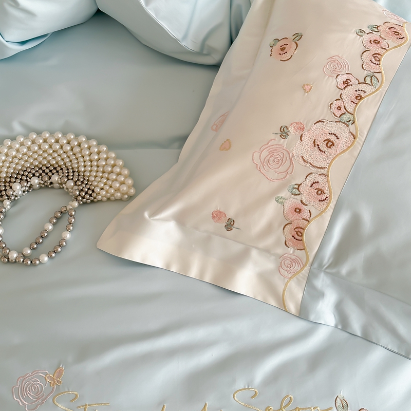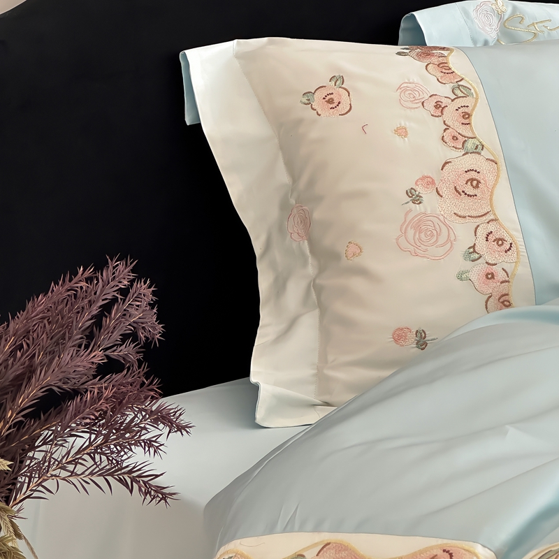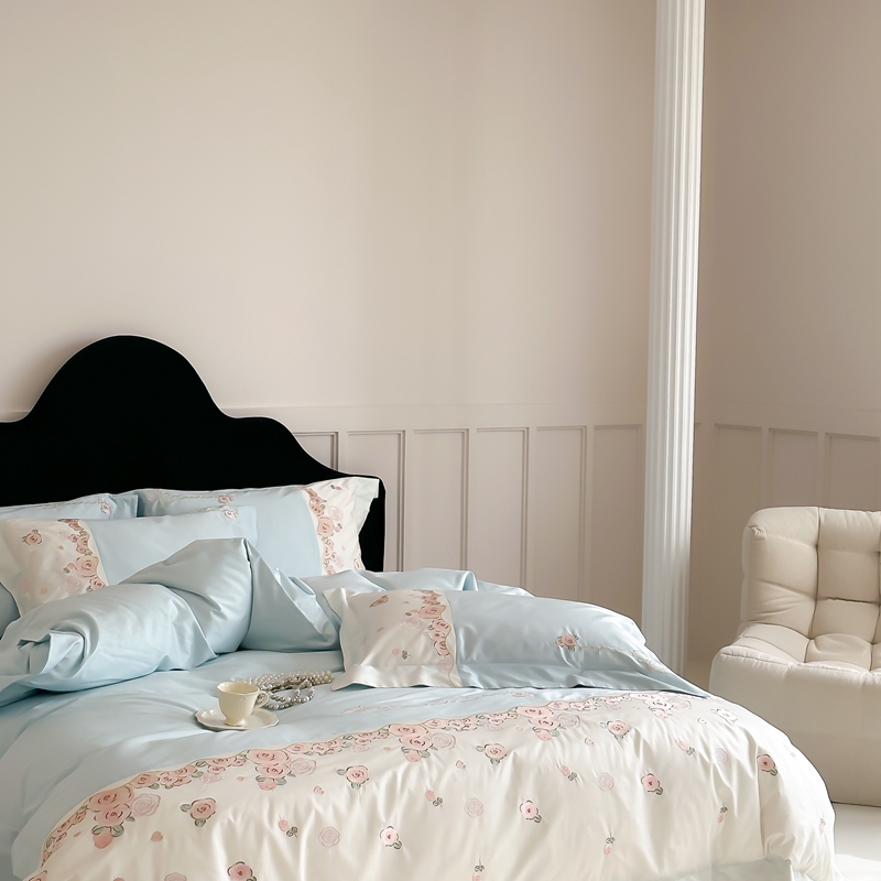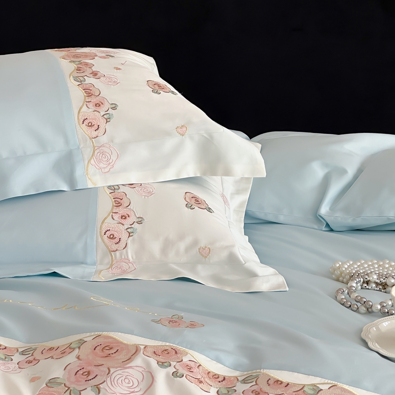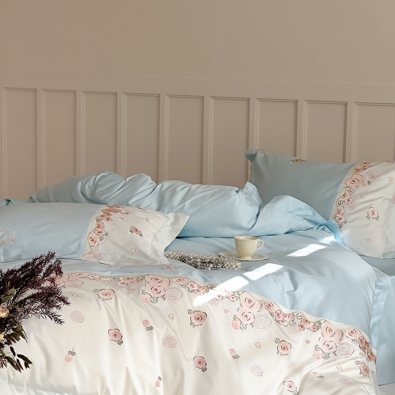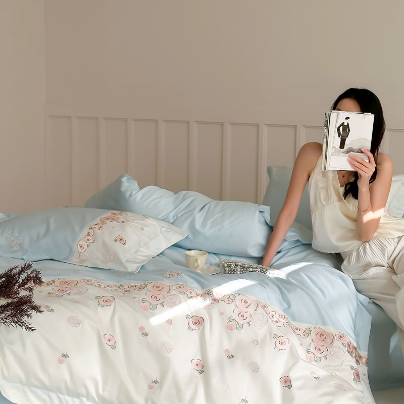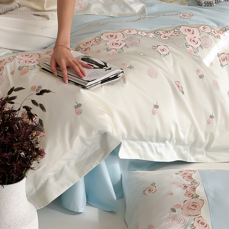 2024新款100支全棉四件套-玫瑰物语 北卡蓝