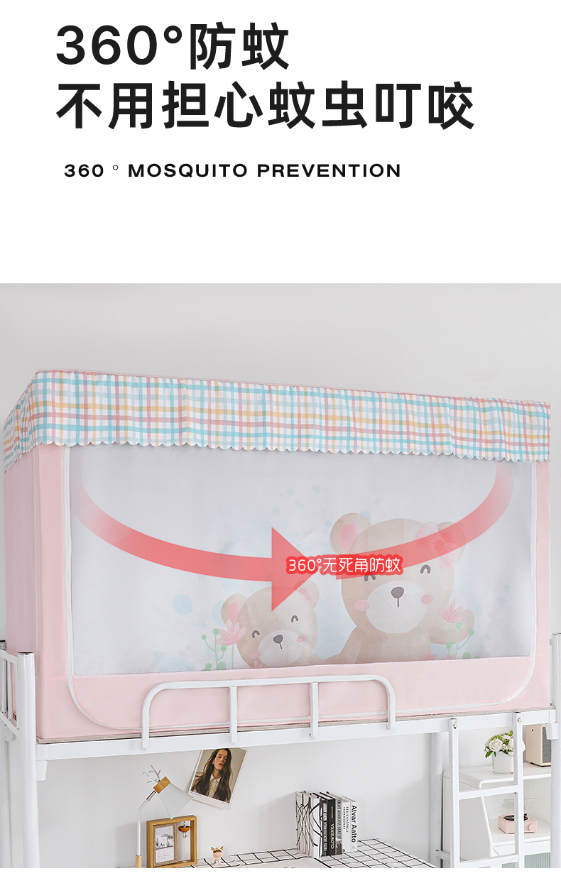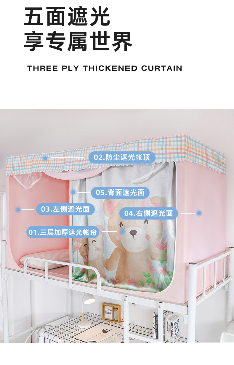 宅部落 2024新款特价款学生上下铺蚊帐强遮光床帘一体式蚊帐 快乐小熊