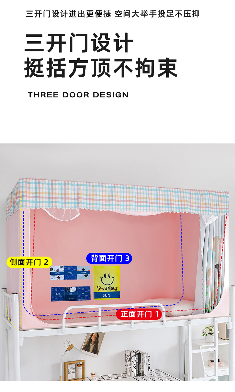 (总)宅部落 2025新款学生床帘宿舍上下铺床帘式强遮光学生蚊帐-纯色系列,纯色-藏蓝色,纯色-淡米黄,纯色-黑色,纯色-灰色,纯色-天蓝色