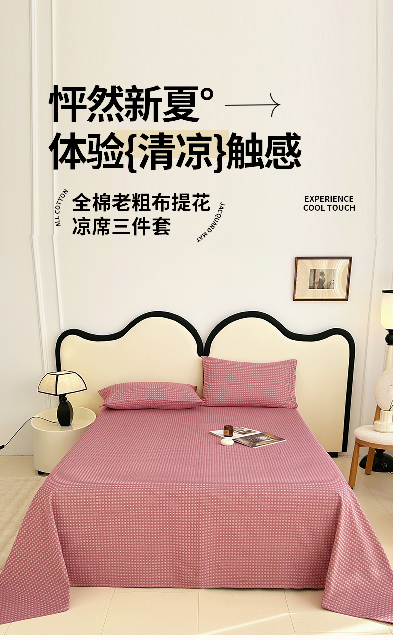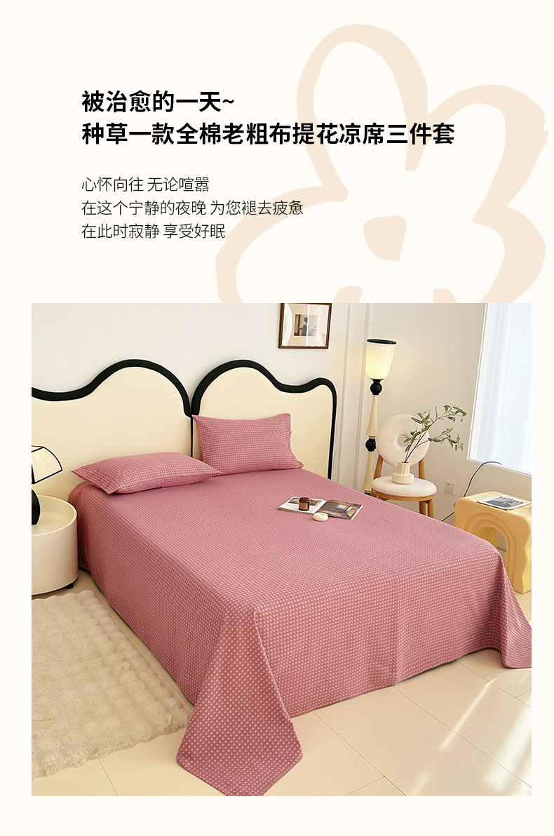 商品名称:棉乐町家居 2025新款全棉色织提花老粗布凉席三件套 九原-红