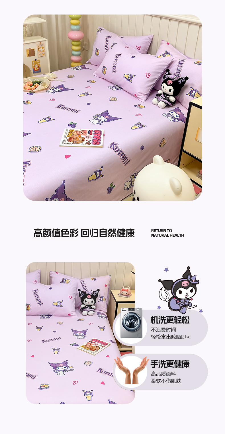 商品名称:沐辰 2024新款正版三丽鸥花型床笠 葡萄库洛米