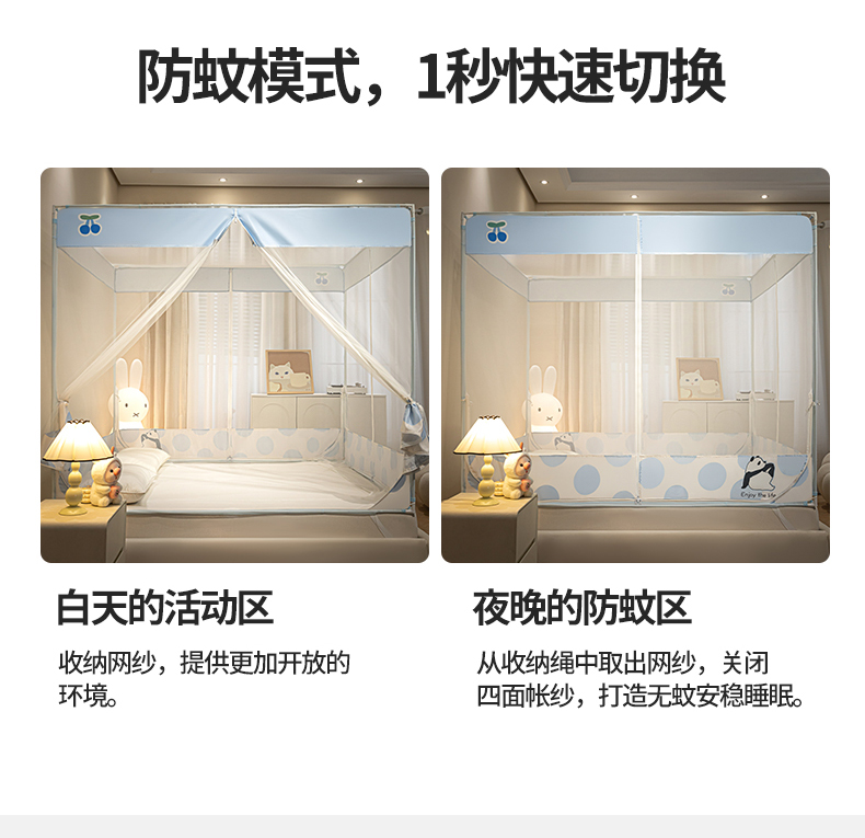 商品名称:2025新太阳新款坐床蚊帐 小熊猫-蓝