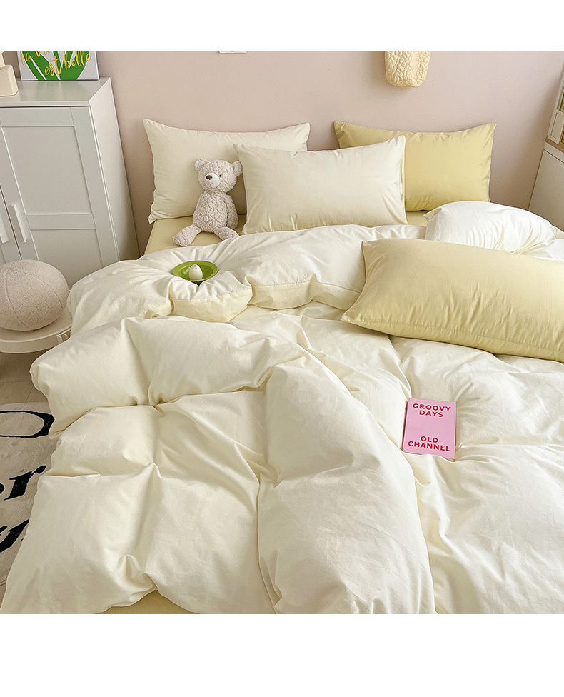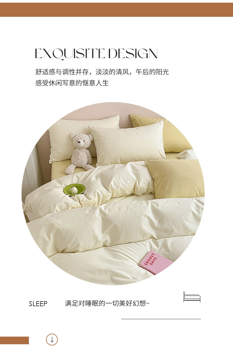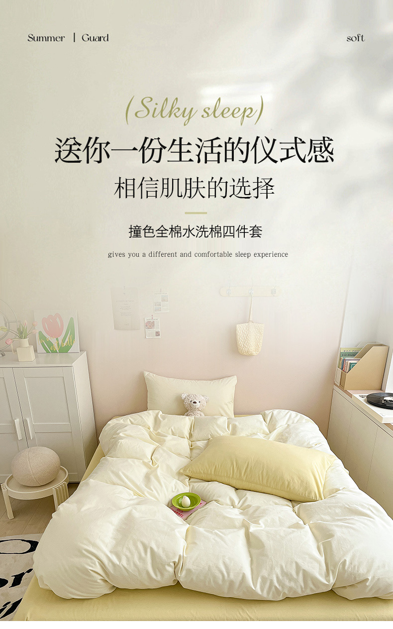 (总) 寐居 2023新款双拼全棉水洗棉纯色四件套,ins风-草绿色,ins风-湖绿色,ins风-裸粉色,ins风-迷雾蓝,ins风-奶油黄,ins风-柠檬黄,ins风-樱花粉,鹅黄+香芋紫,焦糖+卡其,军绿+焦糖,米黄+卡其,米黄+深粉,奶油玉+鹅黄,深粉+湖蓝,深蓝+焦糖,藏青+浅灰,绿+牛油果绿,米黄+浅蓝,抹茶绿+橡木黄,奶油玉+橄榄绿,奶油玉+香芋紫,浅豆沙+浅灰,深蓝+灰