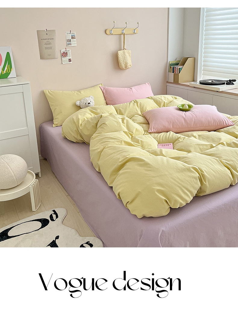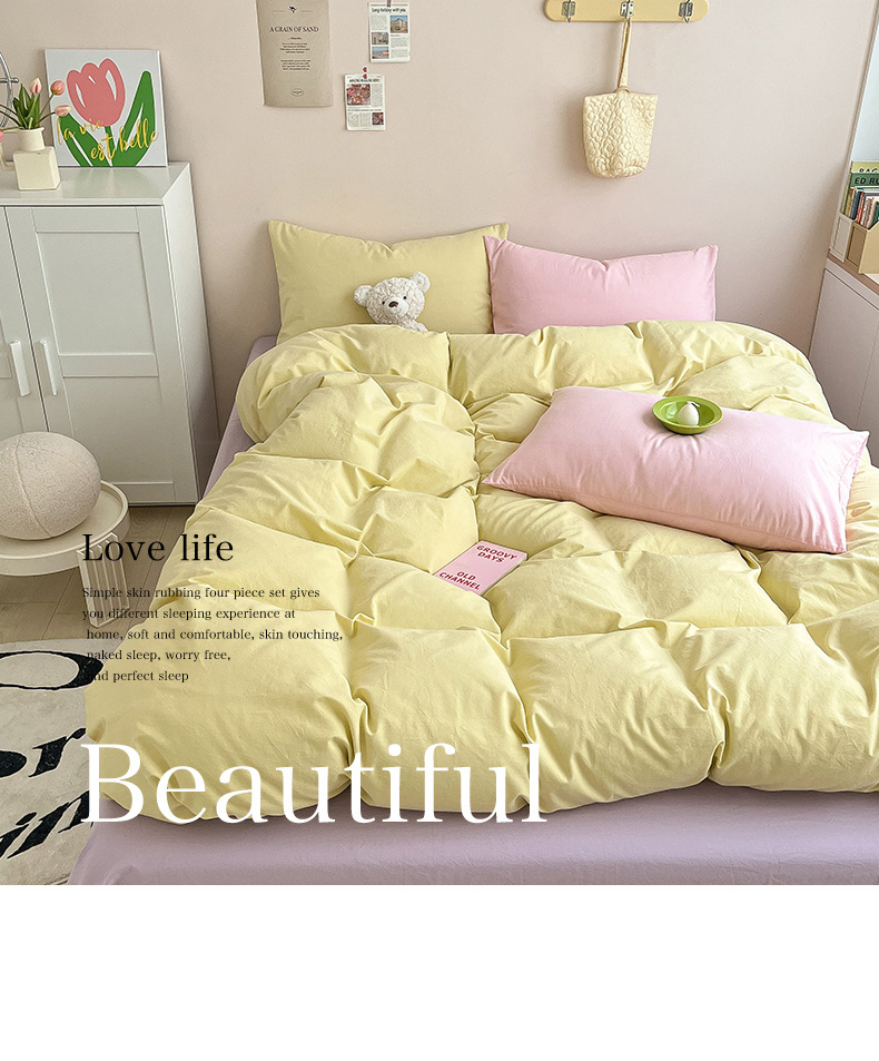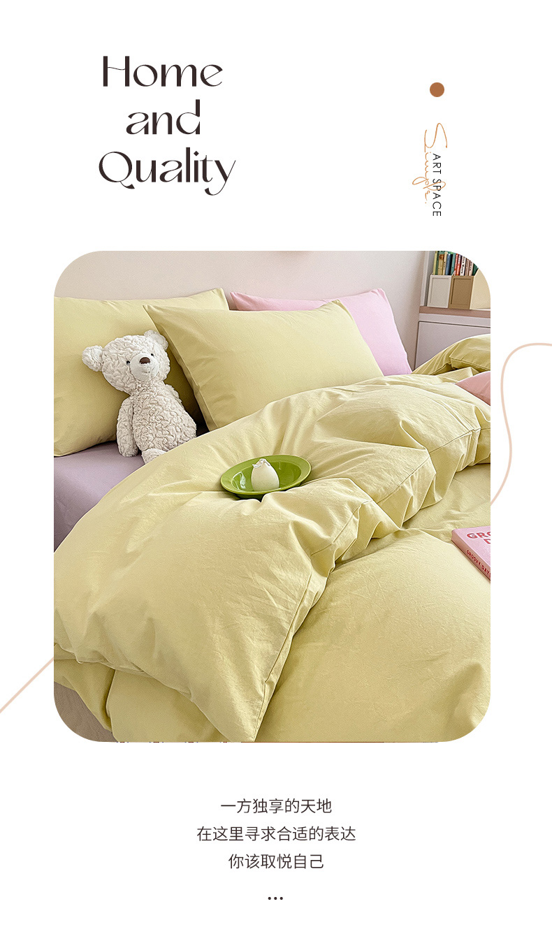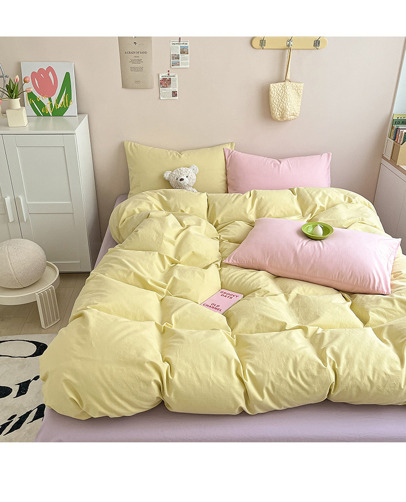当前位置: 91家纺网 > 商品网购 > 床品套件 > 四件套 > 全棉普通四件套 > 寐居家纺 2024新款INS风全棉撞色单品四件套 ins风-柠檬黄