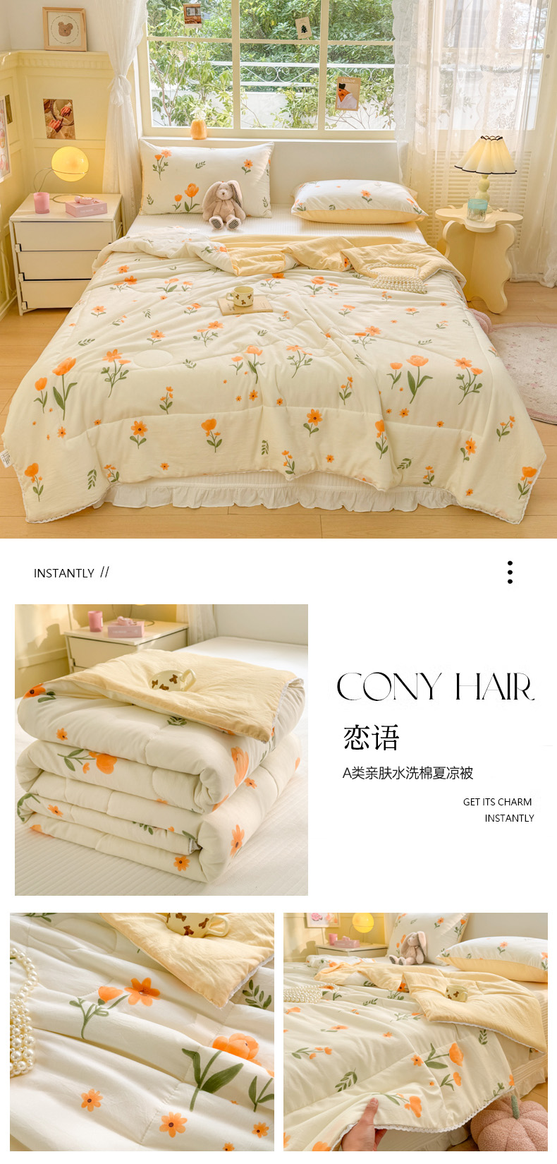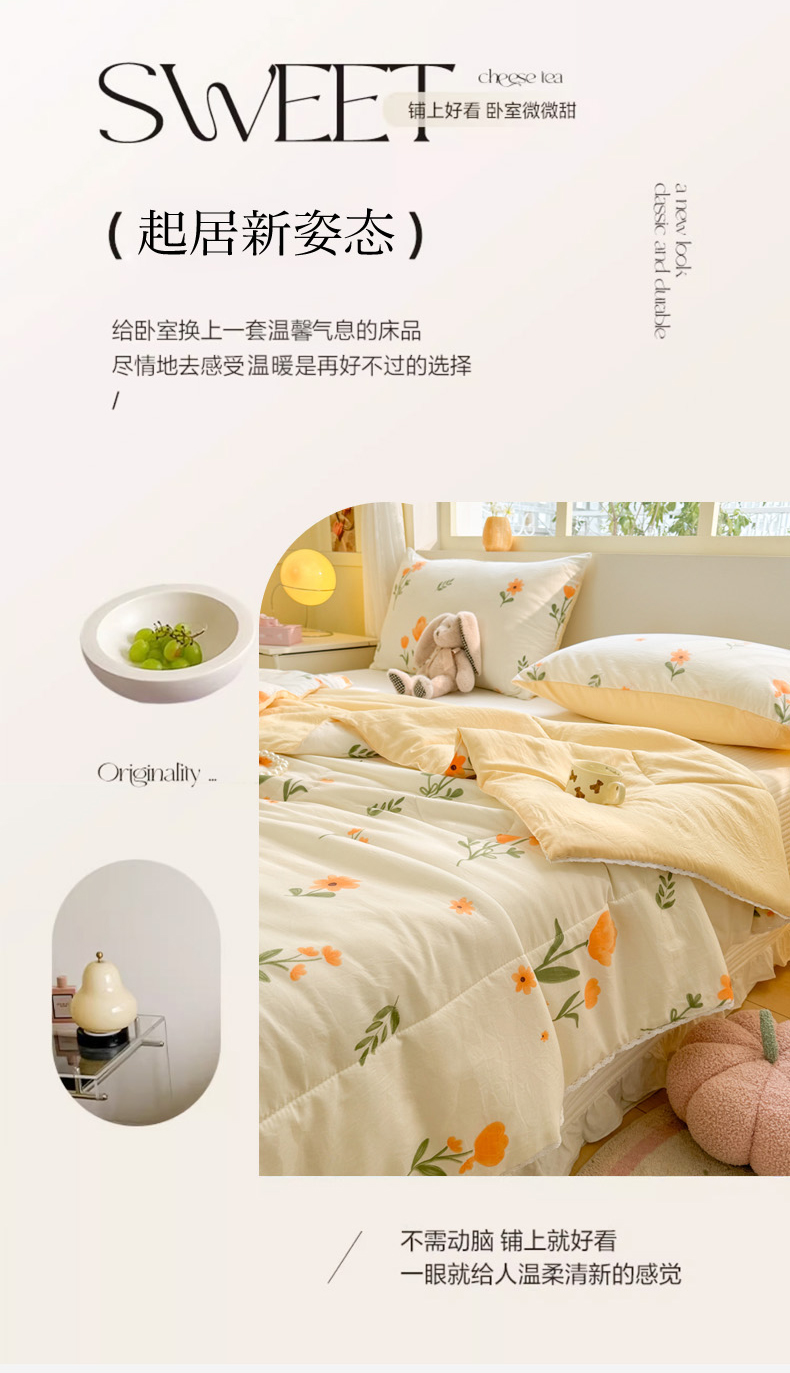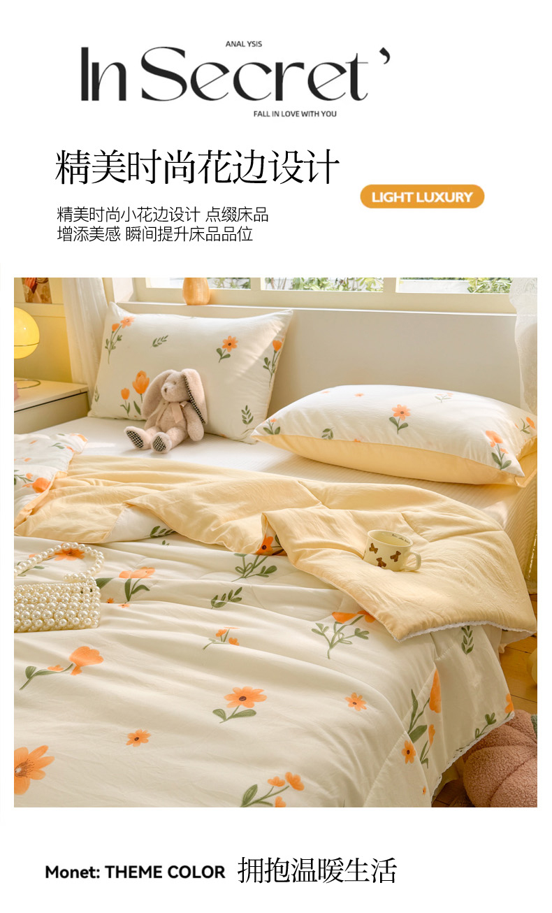商品名称:寐居家纺 2024新款水洗棉小花边夏被 恋语