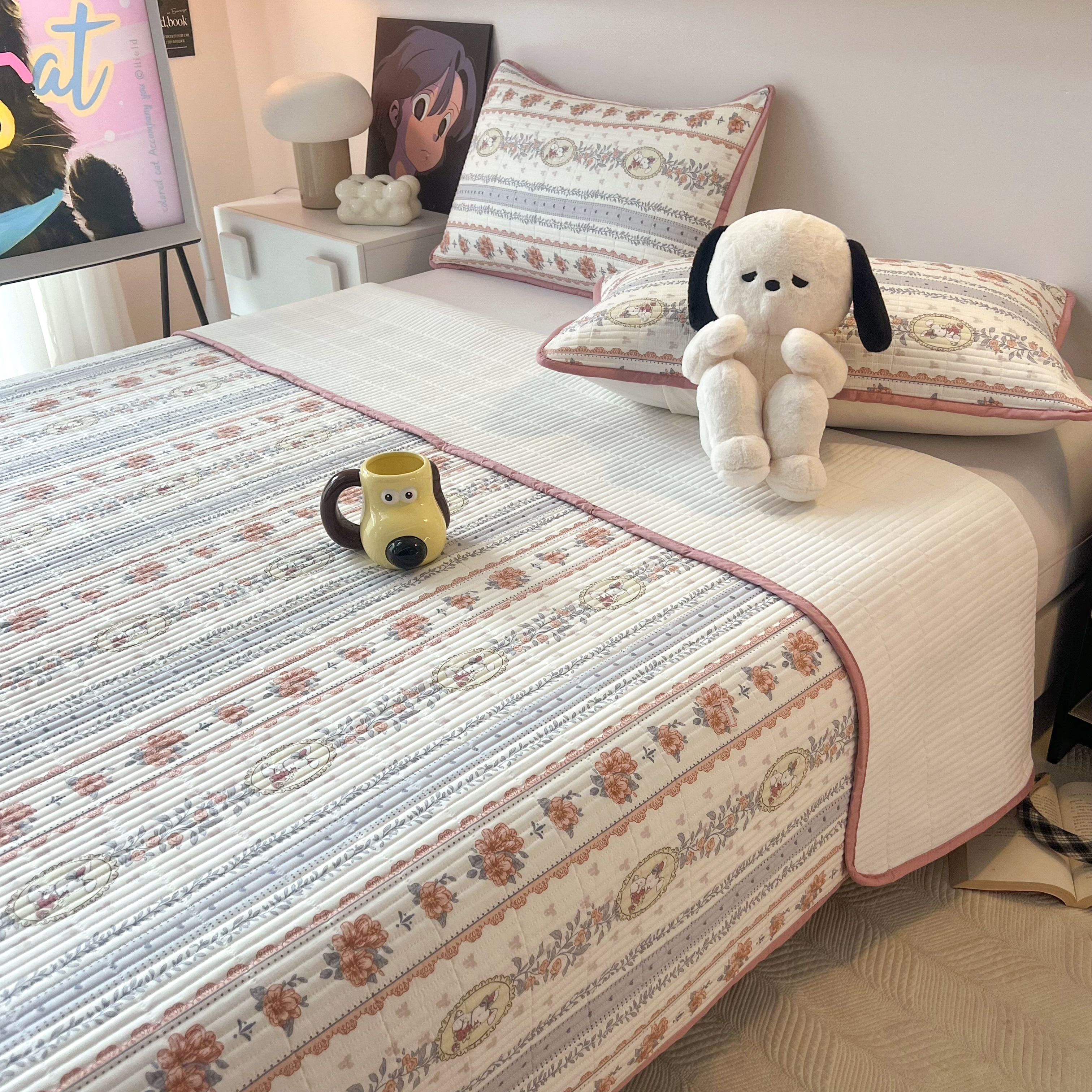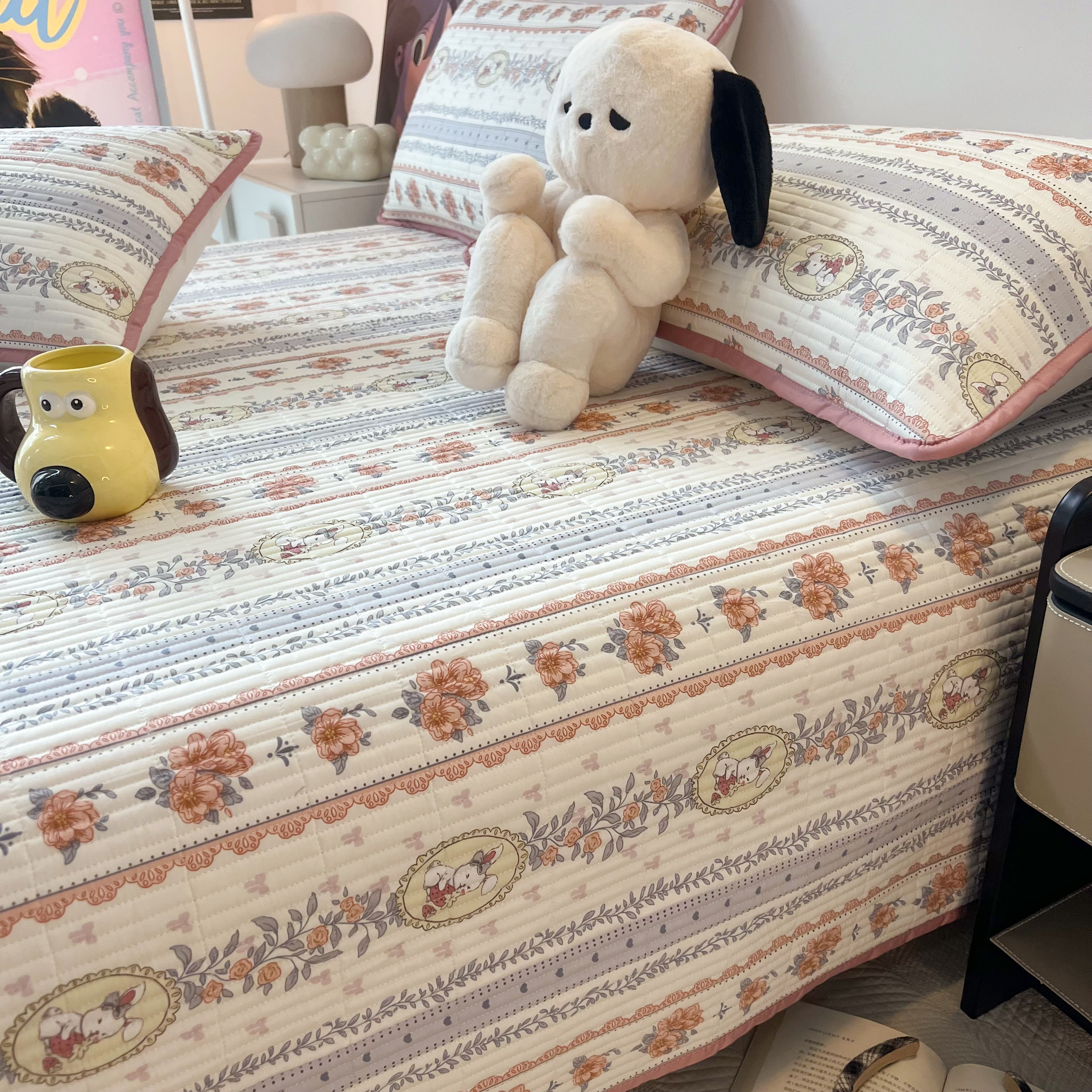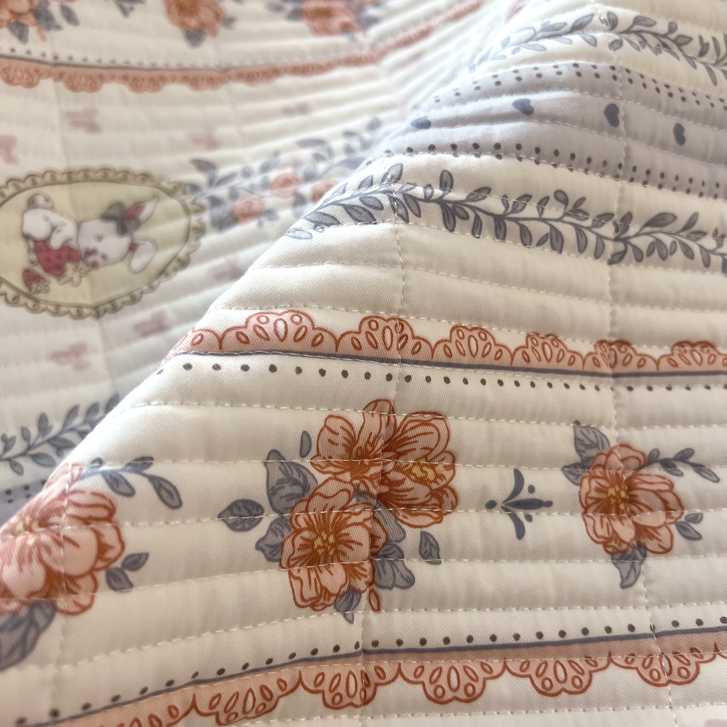 (总)HL原创 2024新款全棉印花床盖,可可小兔,咖色兔,小黄花,摩卡,法式风情,波点狗,温馨小花,牛牛,玫瑰花园,粉色小花,紫小花,紫色花园,紫色草莓,紫萱,紫藤花,绅士格,绿百合,绿荫,绿野仙踪,草莓之恋,草莓小兔,萌宠,赫本,迷梦,追梦蓝,雅灰,魔法猫