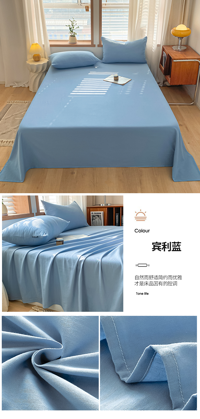 商品名称:莱茵 2024新款A类人字纹提花全棉水洗棉单品系列床单 人字纹-宾利蓝