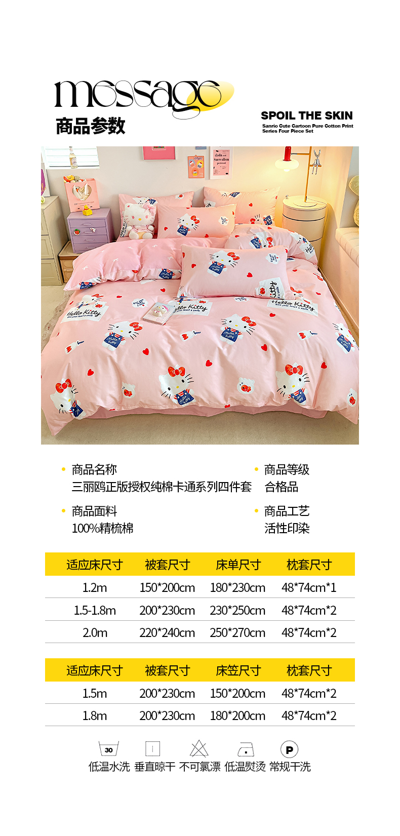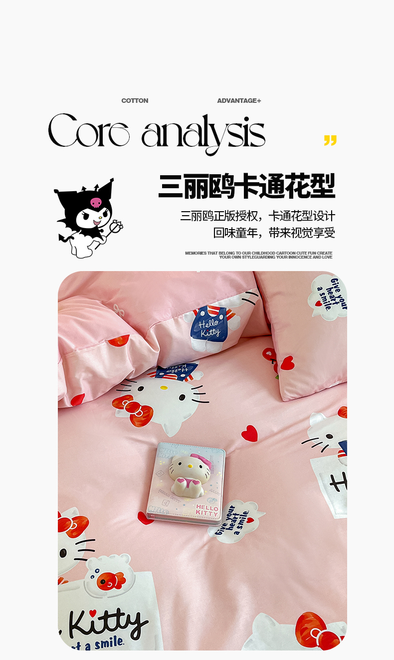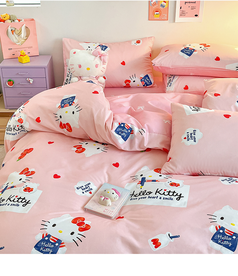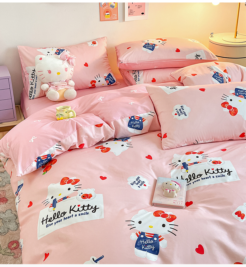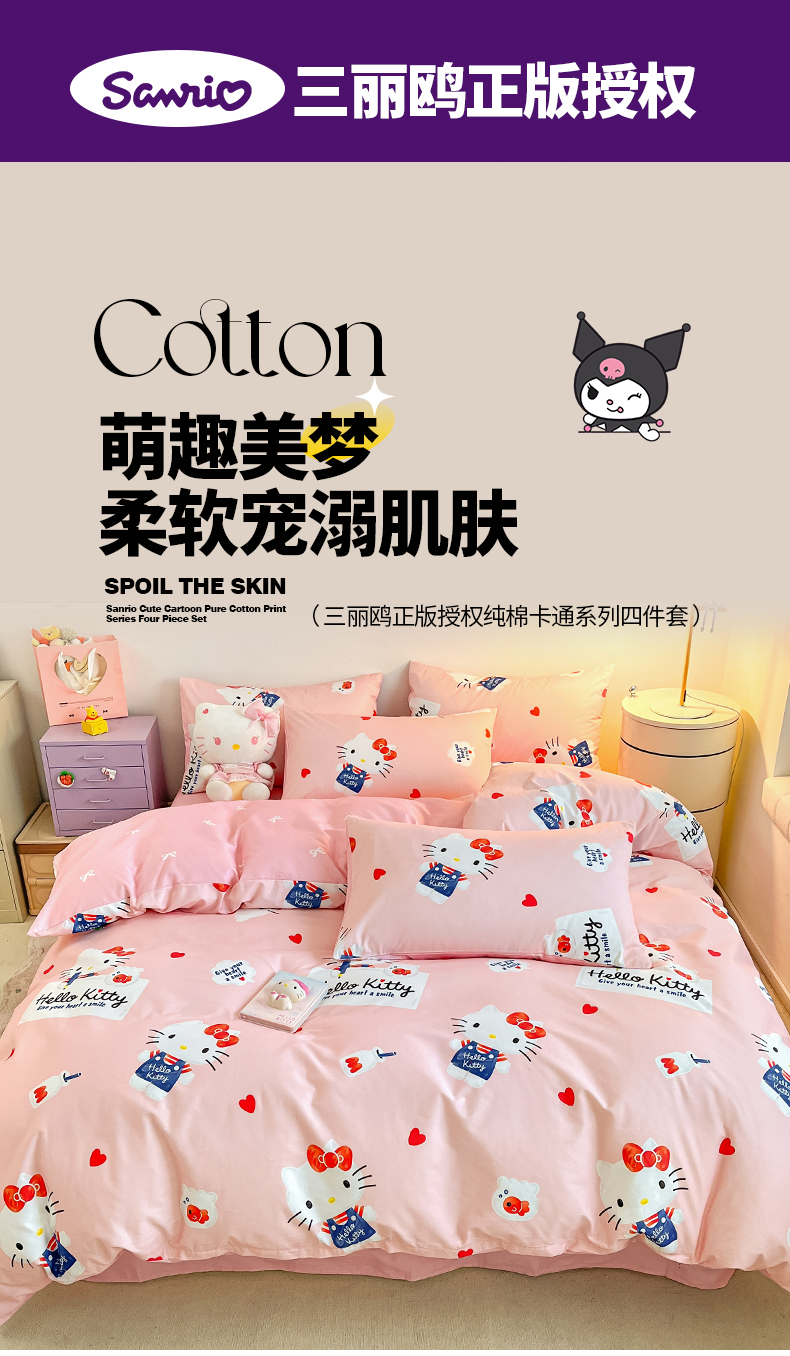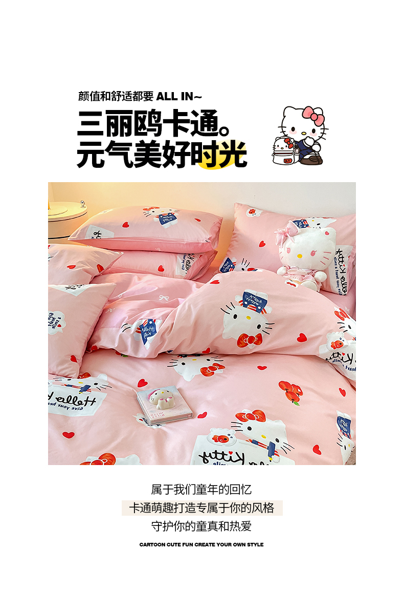 当前位置: 91家纺网 > 商品网购 > 床品套件 > 四件套 > 全棉普通四件套 > 桃子家居 2024新款三丽鸥正版授权全棉卡通系列四件套 棉三丽鸥-苹果Kitty